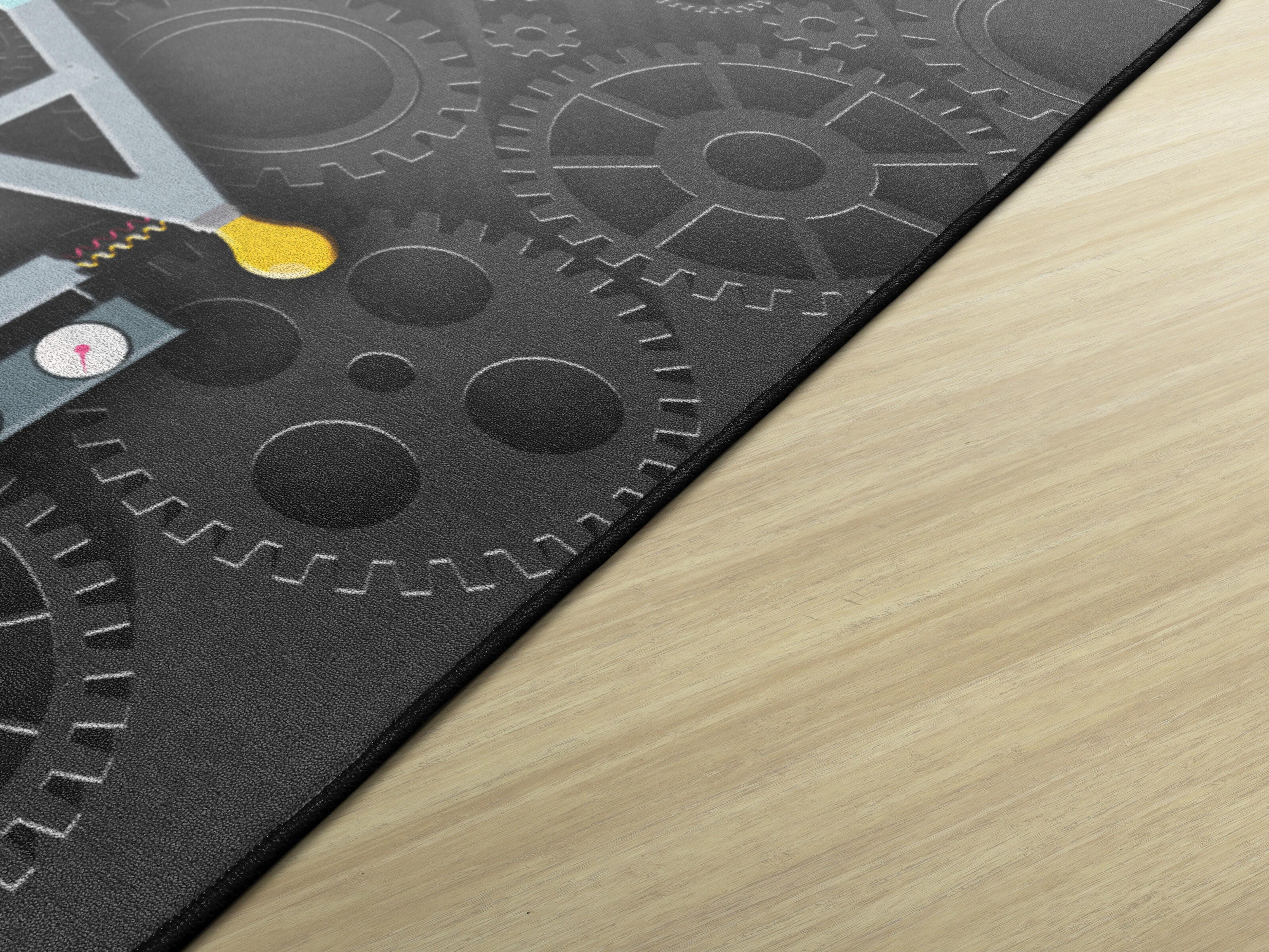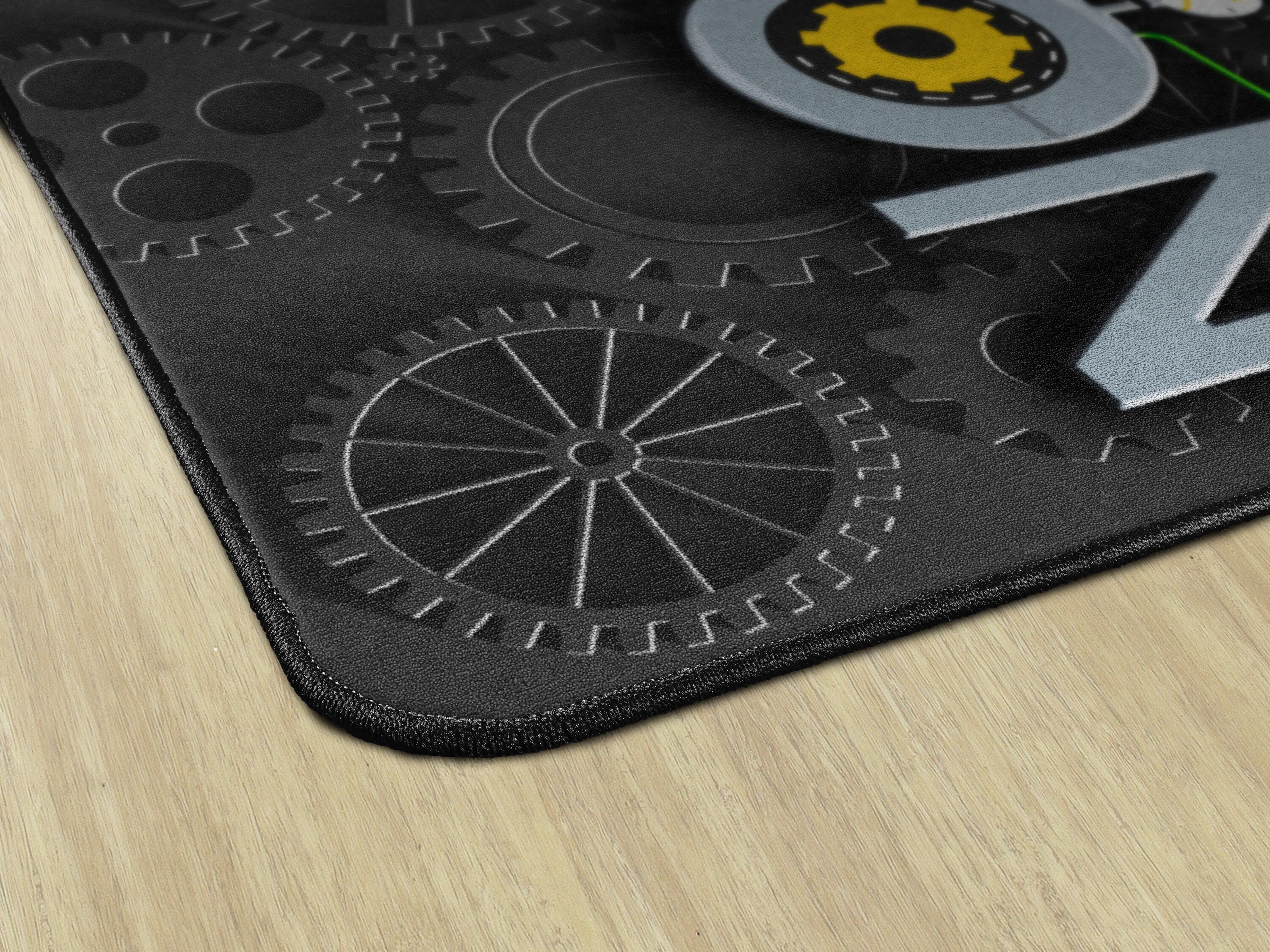 This classroom carpet is all about encouraging STEM learning and creativity. Interlocking gears in a tone-on-tone gray background inspire, while the creation machine sets young minds in motion. If your goal is to enable your students to think in the language of Science, Technology, Engineering, and Math, this classroom carpet will encourage them every step of the way. Washable carpets feature skid-resistant backing to prevent slips and trips, and are treated with SCOTCHGARD-PROTECTOR for superior soil resistance and FORCE 5, a permanent anti-microbial agent to guard against odor, mildew, and mold. All Flagship Carpets are CRI Green Label Plus Certified. Backing contains synthetic (SBR) latex for those with latex allergies. Available in several sizes to match your space.