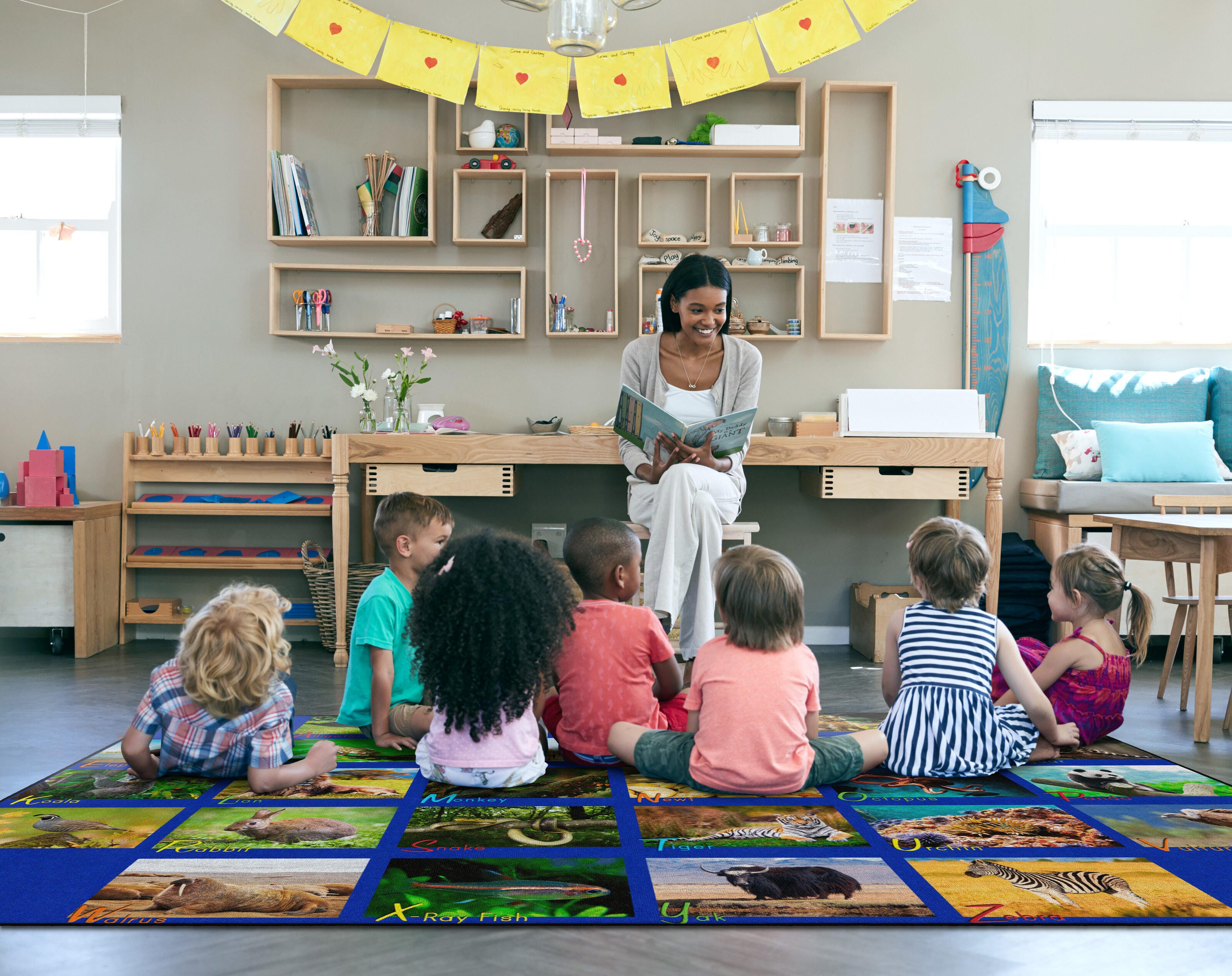 Animal friends help to guide little learners in their journey to learn the ABCs. This educational carpet features animals of all types to help teach students ABC literacy. Available in several sizes to best fit your space.