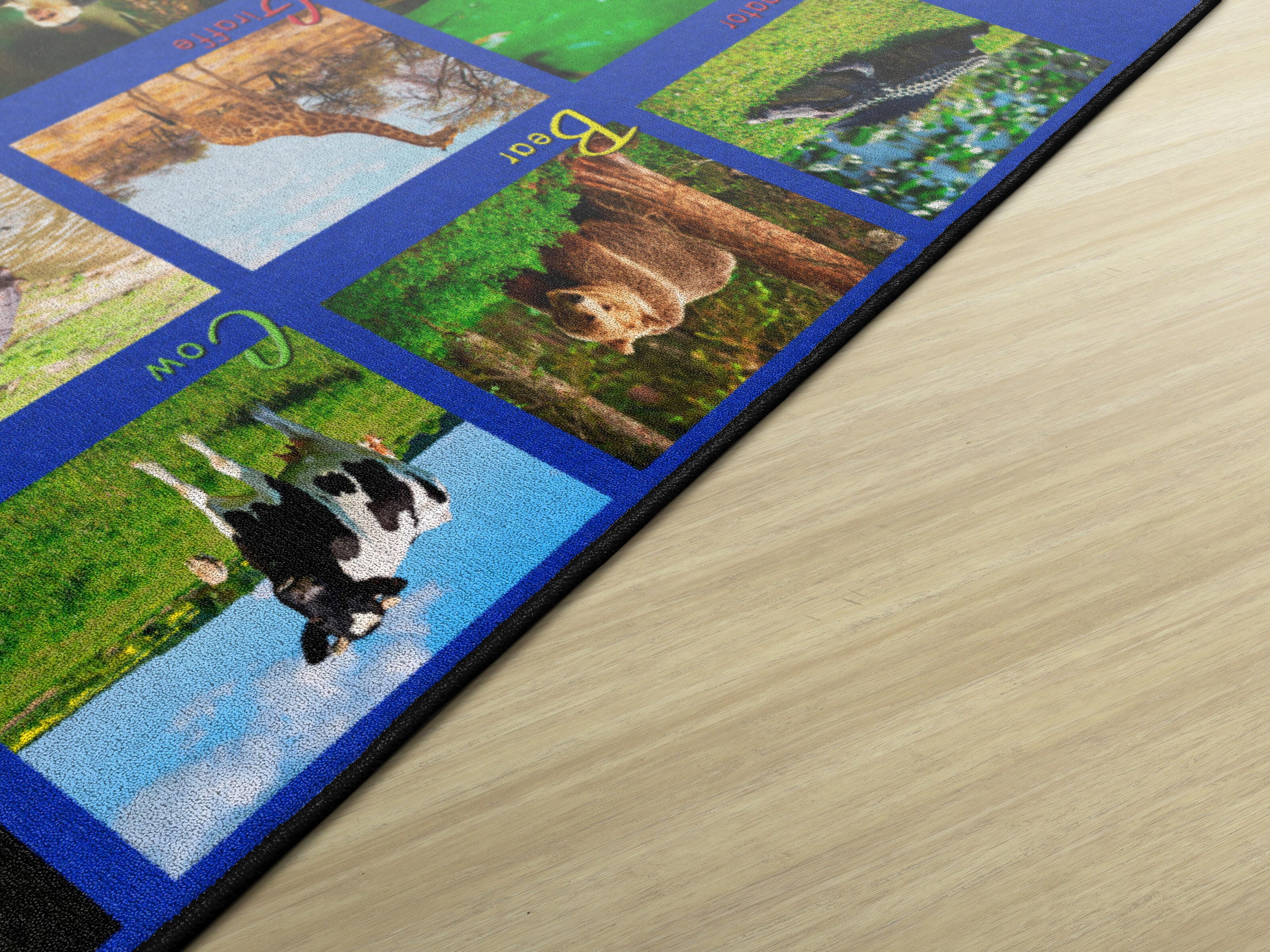 From pets to farm animals to exotic and even magical animals, each letter of the alphabet is represented. Vivid photographic images on the carpet will surprise and delight students, sparking their imaginations. These innovative PhotoFun carpets enhance visual learning for all children regardless of language, speech or hearing abilities.