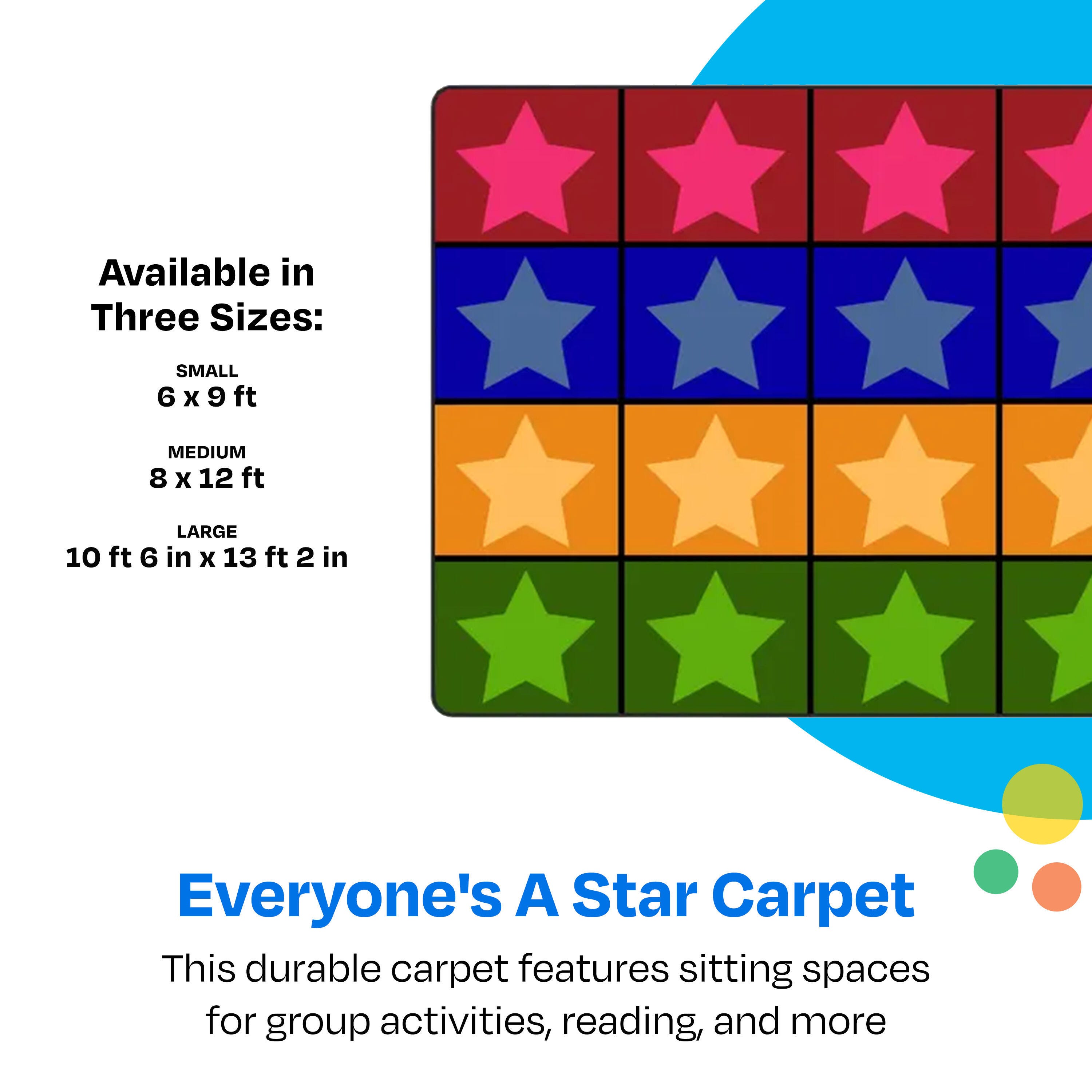 Spark imagination in your classroom with this star-studded Childcraft carpet! Each student gets their own star to shine from, whether they're the center of attention or learning in their own comfort zone. Ideal as a seating carpet or area rug.