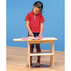 Childcraft® Wooden Ironing Board provides a realistic and engaging way for children to pretend play household routines while developing fine motor skills and social interaction. This durable wood ironing board features a flat, stable surface for easy pretend pressing and folds away neatly when not in use. Designed with sturdy dado construction and a four-coat UV acrylic finish, it withstands repeated use while resisting stains and scratches. The child-friendly height ensures comfortable play, making it a great addition to dramatic play areas in early learning environments. Some assembly required. The play iron measures 29-3/4 W x 9-3/4 D x 20-3/8 H inches.Features