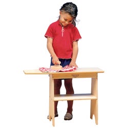 Childcraft® Wooden Ironing Board Set provides a realistic and engaging dramatic play experience for young learners. Featuring a sturdy all-birch plywood ironing board with a wood-grain top and a smooth, easy-grip wooden iron, this set allows children to pretend to press clothes, doll outfits, and fabric pieces just like real caregivers. The durable 11-ply dado construction ensures long-lasting quality, while the stain-resistant clear finish provides easy cleaning. Designed to foster social interaction, fine motor skills, and early learning, this play set is perfect for dramatic play areas in classrooms, childcare centers, and home playrooms. The iron measures 4 x 6 inches and the board measures 29-3/4 W x 9-3/4 D x 20-3/8 H inches. Assembly required; hardware and instructions included.Features
