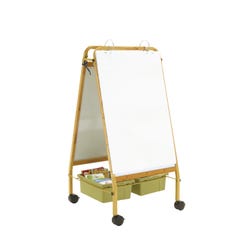 Copernicus bamboo easels are a more sustainable choice than metal models because they have a smaller carbon footprint. Bamboo is a renewable resource that grows quickly and absorbs carbon, unlike steel which produces carbon. For every bamboo product purchased, Copernicus will donate to conserve natural panda habitat through the World Wildlife Fund. This easel has a natural aesthetic better suited for neutral and early childhood environments. With multiple activity-based features, the Early Learning Station is perfect for preschool to grade one classes. The station provides teachers with quick set-up and the ability to change lessons when needed. Available in Sage or Vibrant color combinations. The unit measures 30 x 26 x 51 Inches.Features
