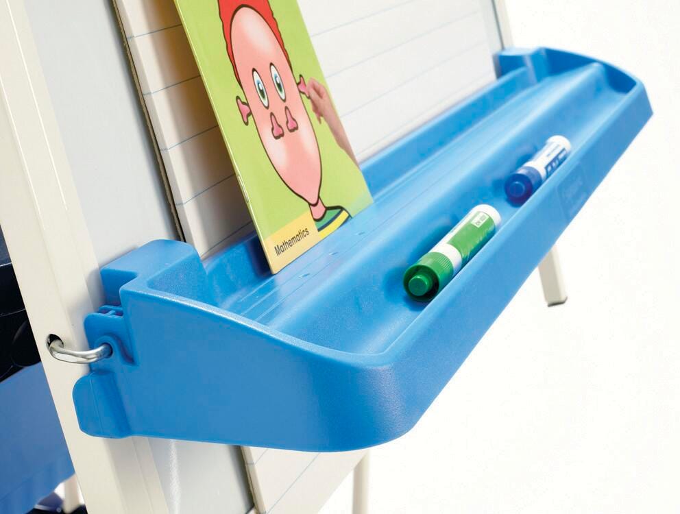 This Copernicus Regal Reading and Writing easel is a valuable teaching tool for all primary classrooms. Front magnetic dry-erase board, 29 W x 29 H inches. Rear removable dry-erase board, 24 W x 31 H inches. Four sliding open tubs and adjustable book ledge. Four 3-inch casters and 2 foot-activated brakes. Frame measures 31-1/2 W x 32 D x 56-1/2 H inches.