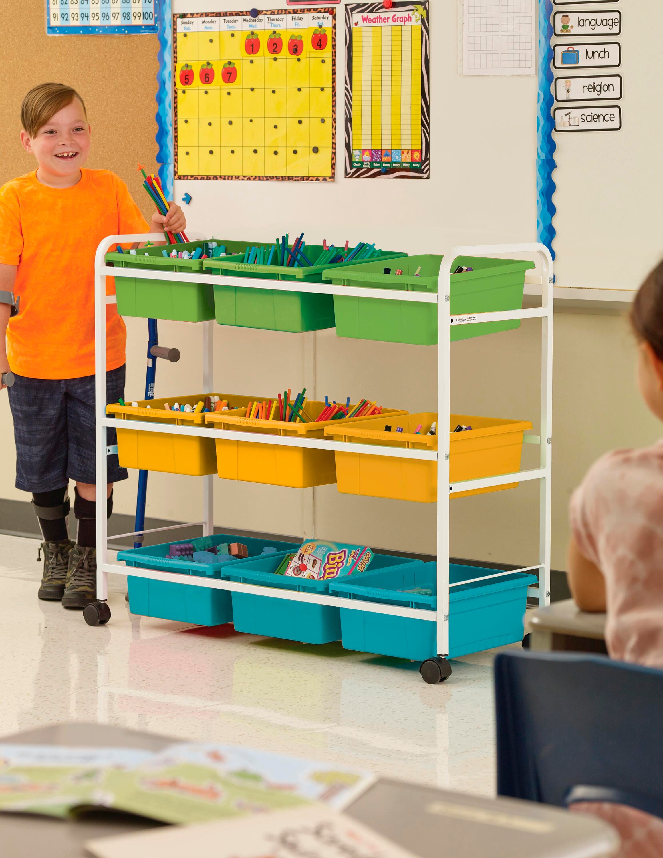 Designed to be used as a mobile in-class library where students can help themselves to a book or for maker space materials and tools. These carts are the ideal height for students and teachers to easily view and choose a book.