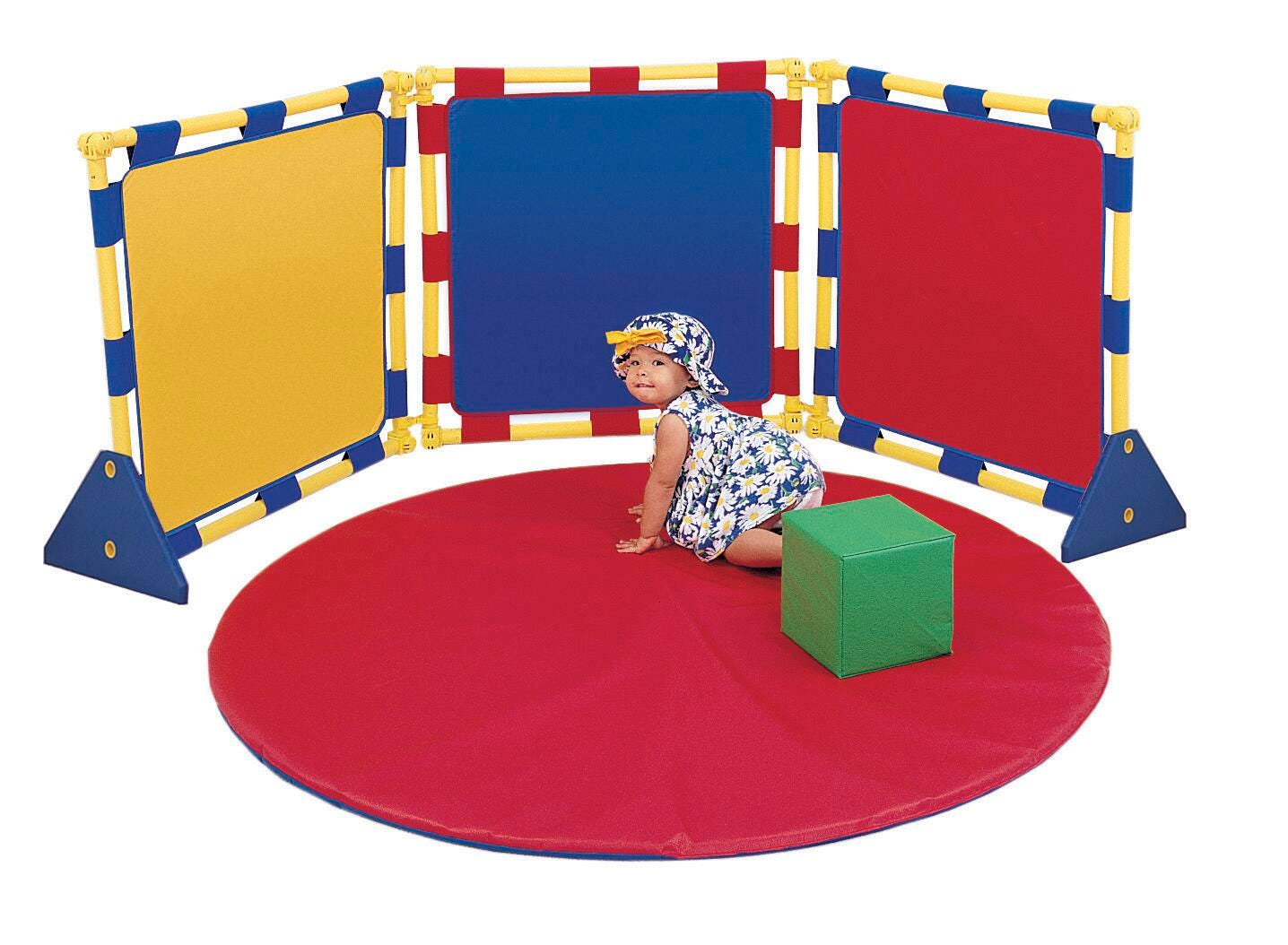 Encourage a focused space in your playroom or care center with these colorful room dividers that are easy to set up and take down.