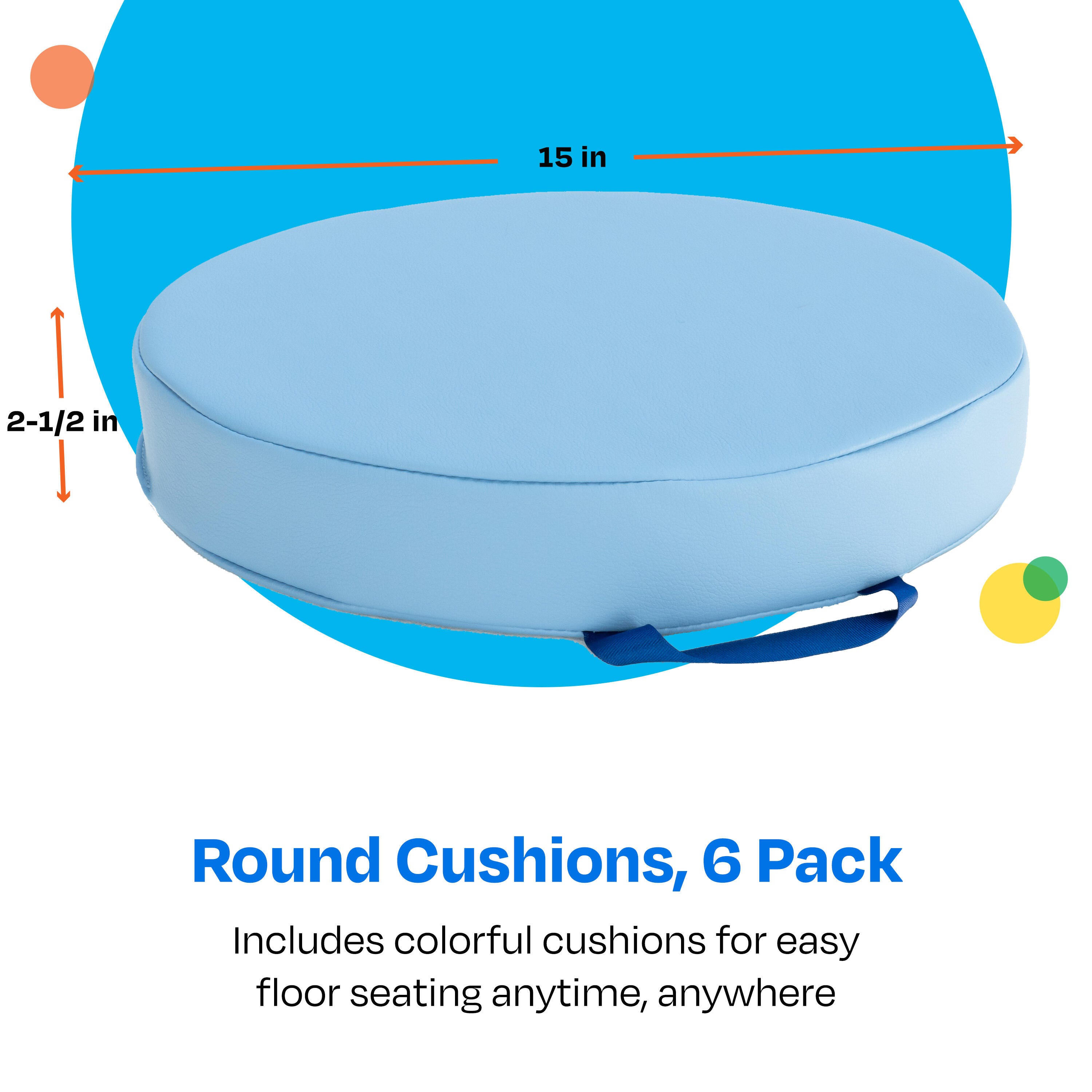 Childcraft Round Cushions, 15 x 15 x 2-1/2 Inches, Assorted Colors, Set of 6