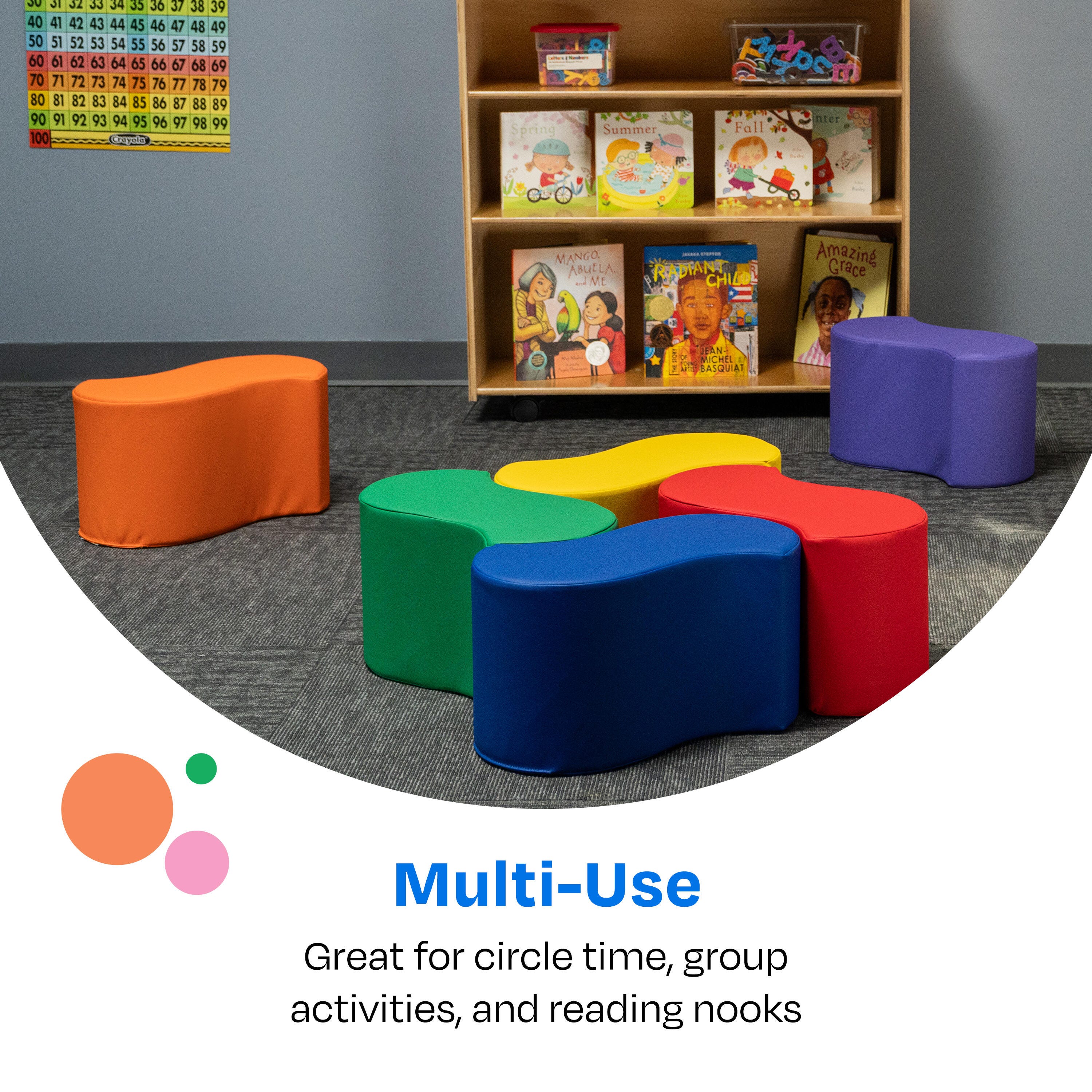 Create a dynamic and inviting seating area with these soft and sturdy wave stools, designed for collaborative learning and flexible seating arrangements.