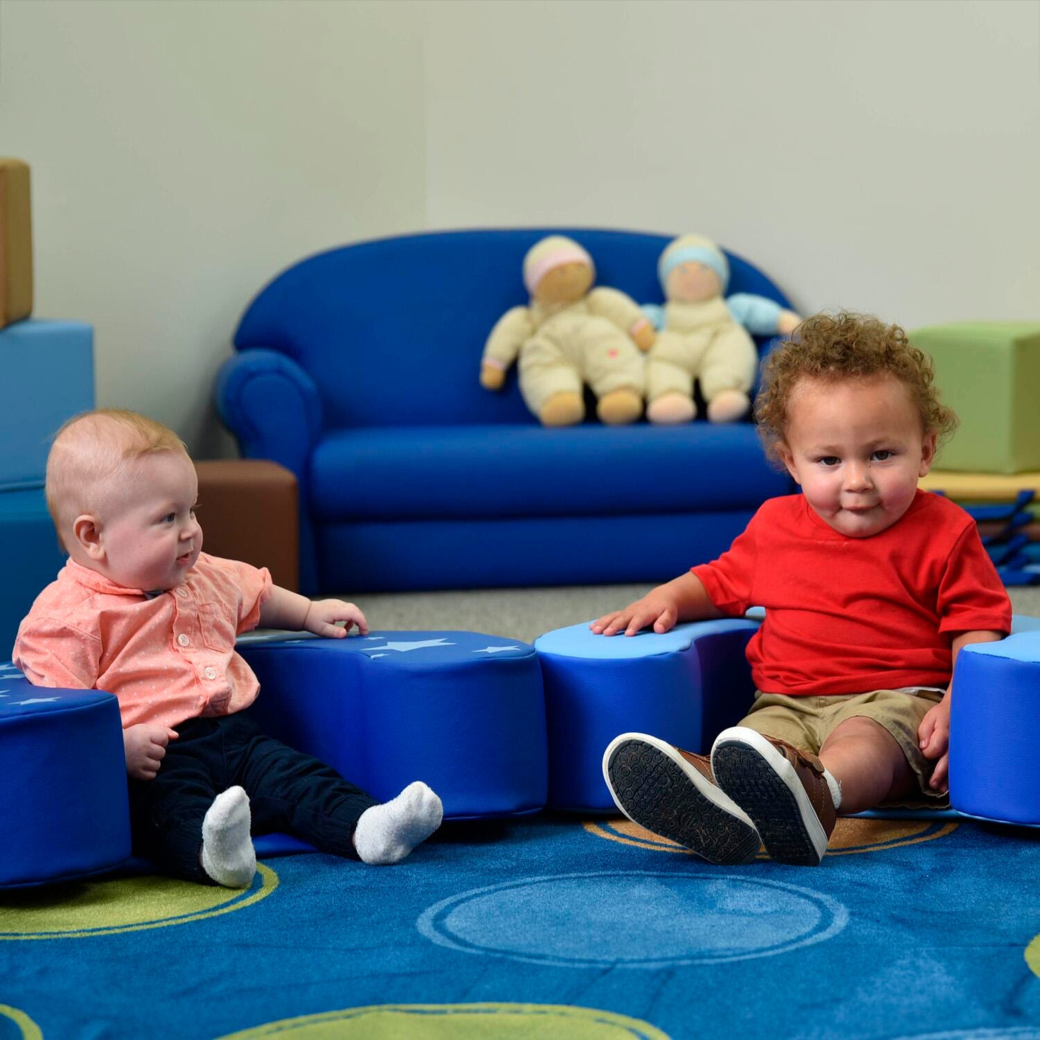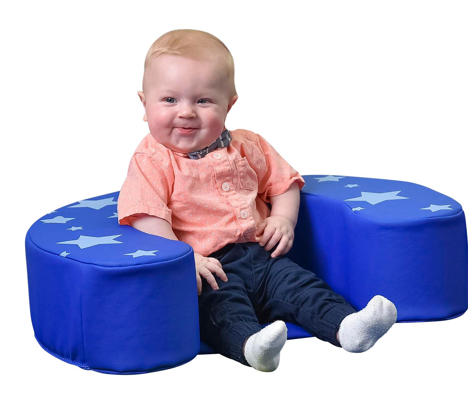 This Sit Me Up foam floor cushion is perfect for infants taking their first seat, designed to provide soft support when baby needs help in sitting up in their playroom or nursery. Calming blue color is decorated with a star pattern, perfect for winding down and storytime. Measures 24 W x 18 D x 6 H inches. For ages 4 to 12 months.