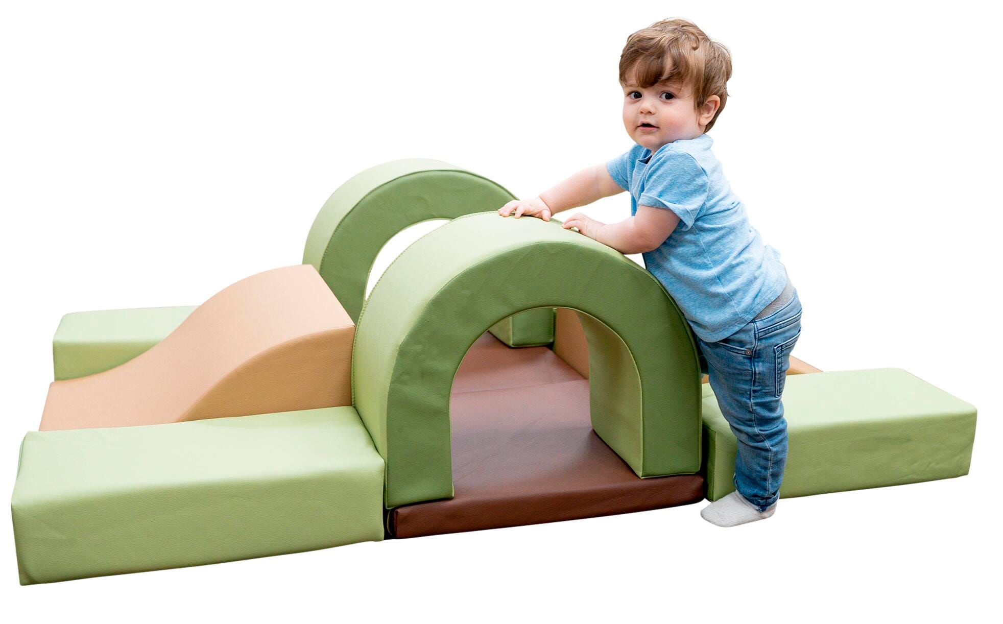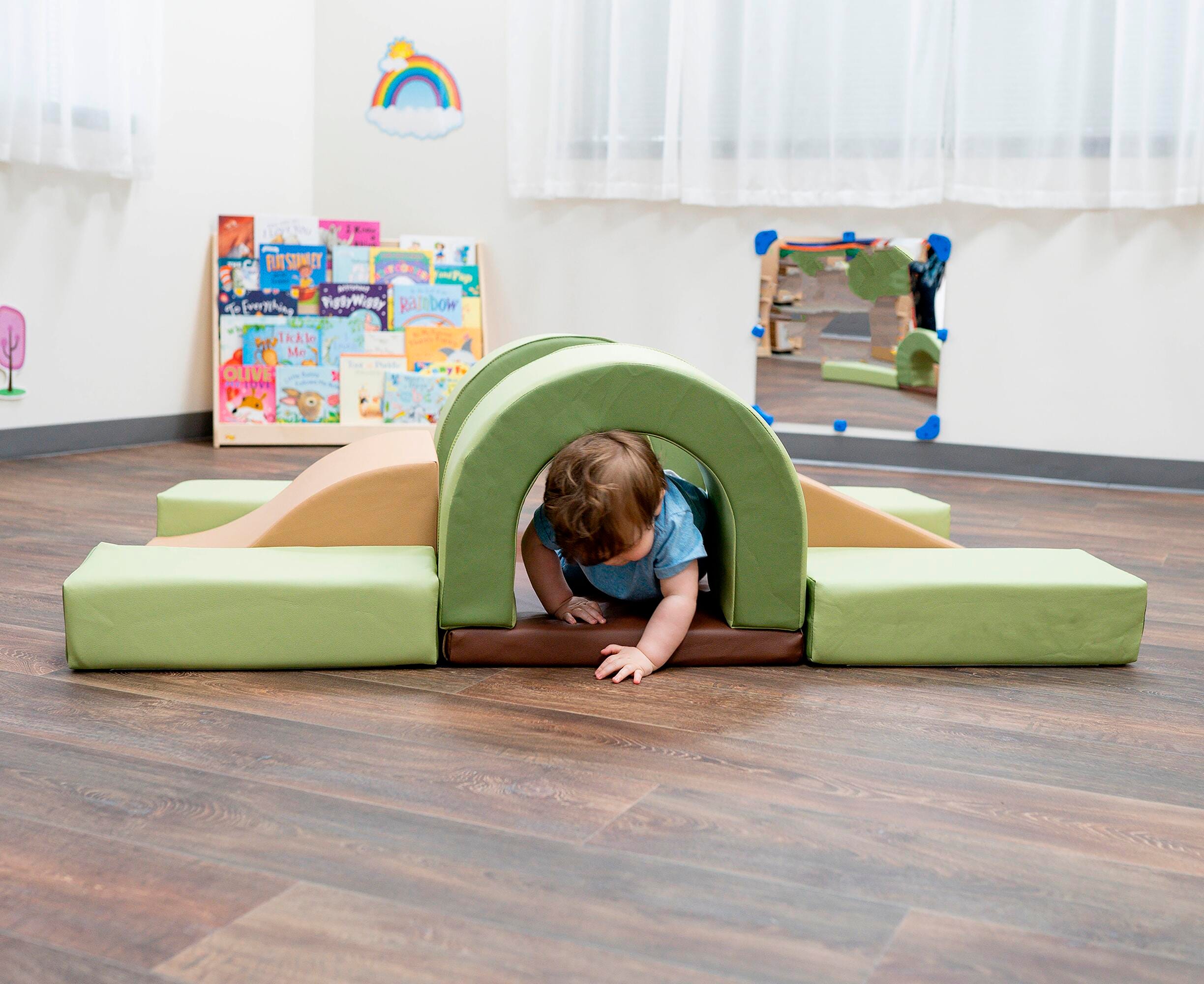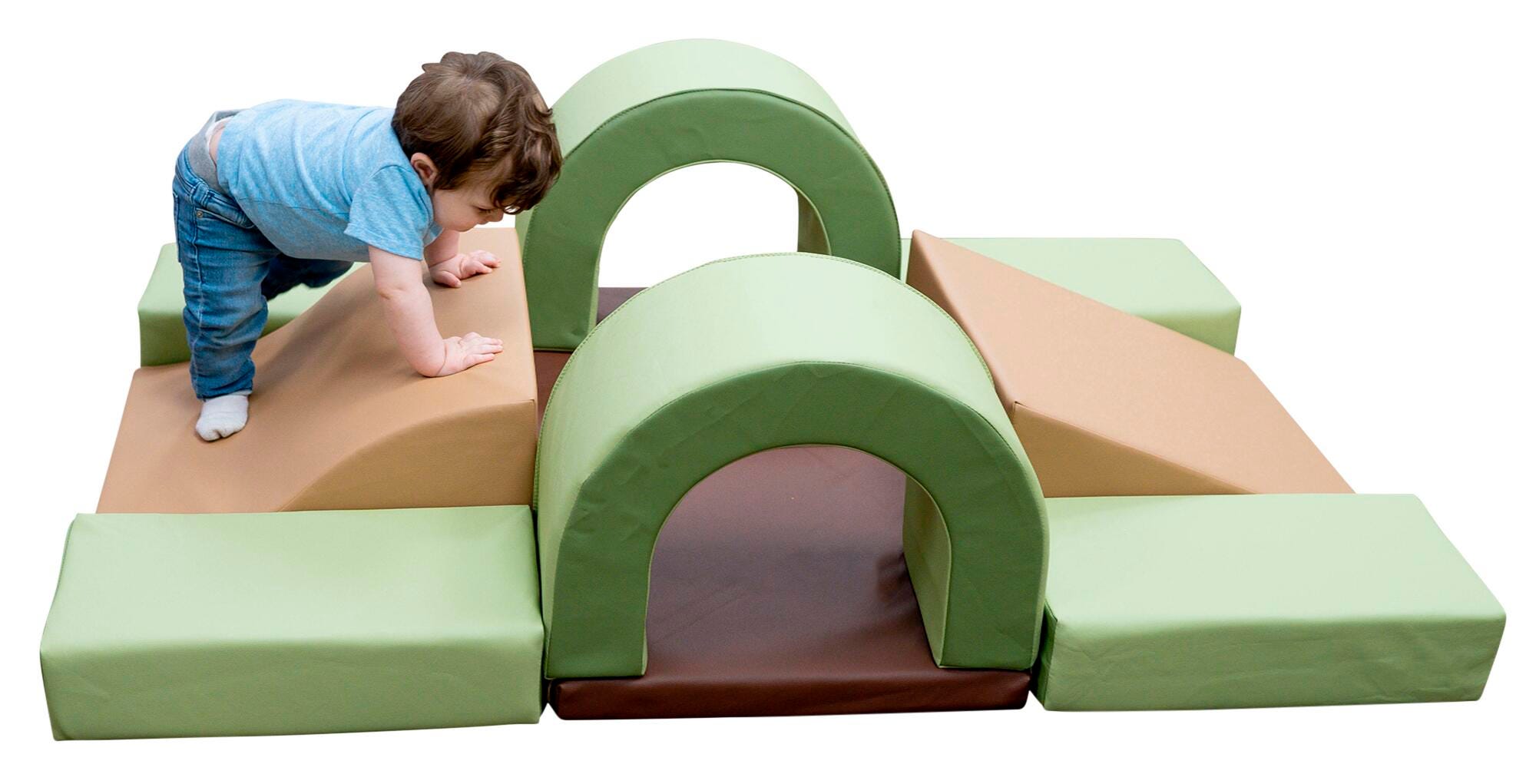 The Cozy Woodland Hideout by Children's Factory is perfect for babies starting to crawl! This soft and safe environment is fun to explore and helps little ones build muscle control. The 10-piece set comes in calming woodland colors and includes ramps, arches, and steps that are low enough to keep young children safe as they climb over and through.Features