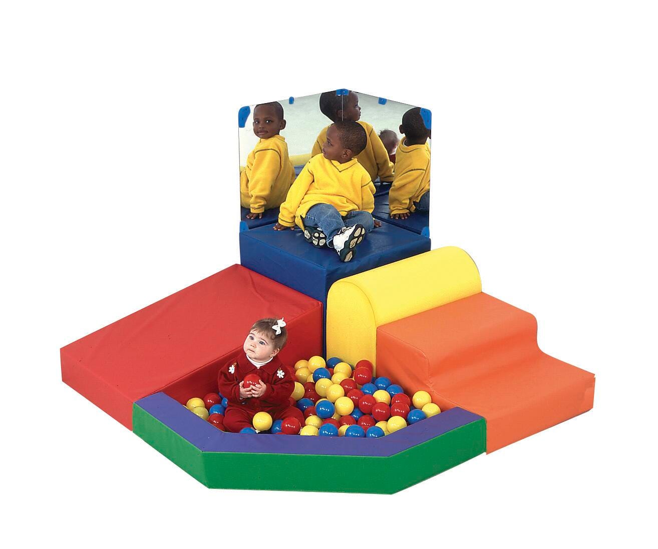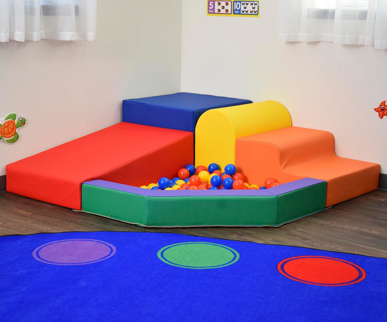 A true all-in-one Mikayla’s Mini Mountain has stairs a ramp AND a ballpool! Bright colors attract curious climbing crawlies and toddlers to our soft Corner Climbers. Great for a variety of ages and stages. Older kids can enjoy the challenge of reaching the top while younger kids can find delight in the colorful ballpool at the bottom. Balls not included. Measures 60 L x 60 W x 18 H inches.