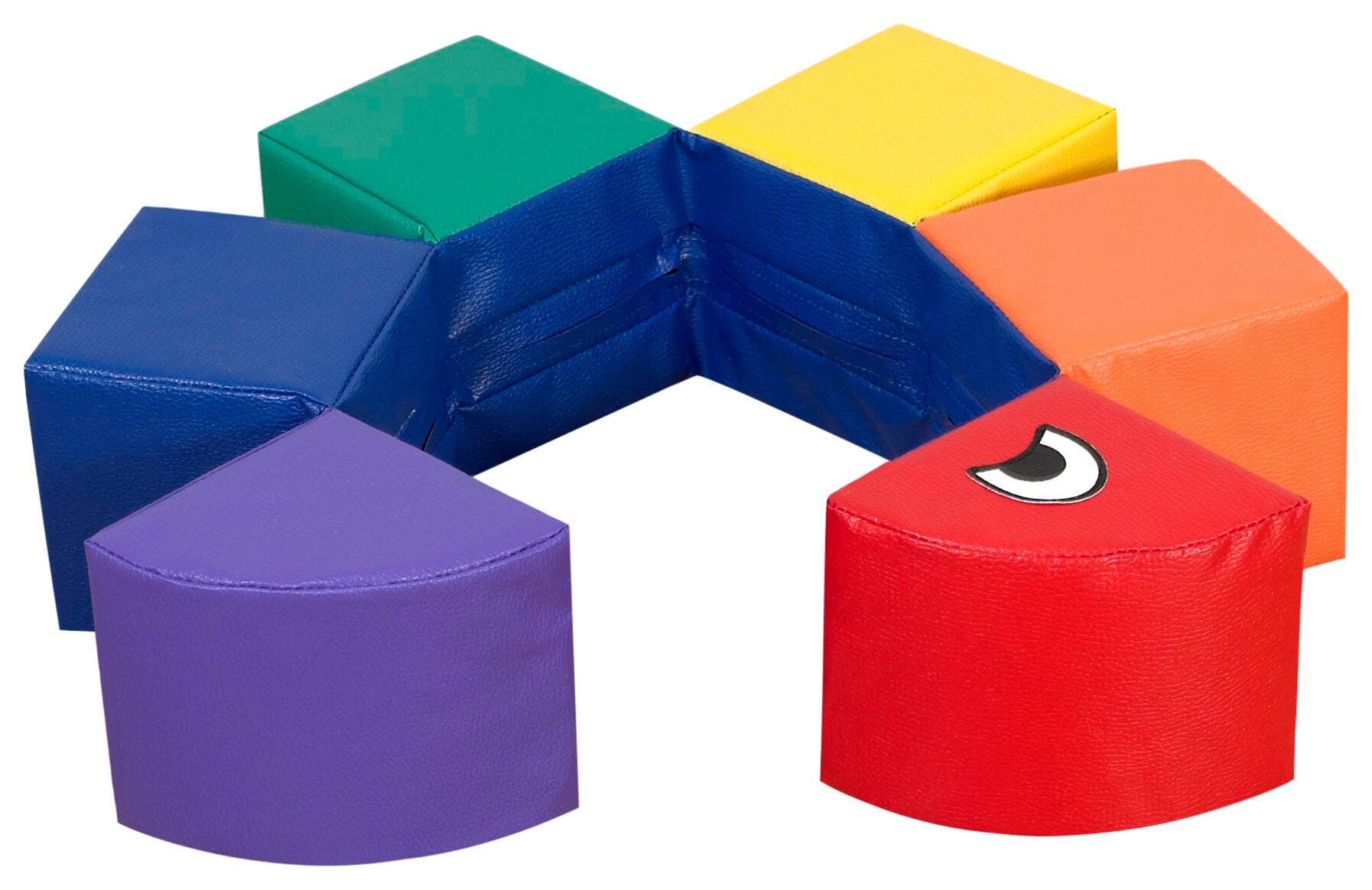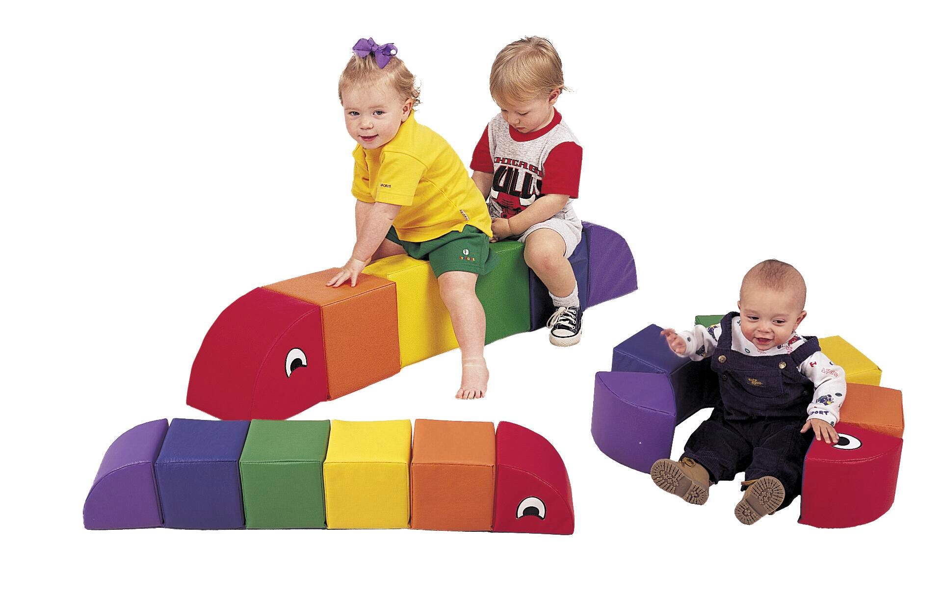 Climb up on the soft and sturdy inchworm, a friendly worm that encourages gross motor skills in young ones! This inchworm slides caterpillar-like across the floor and is hinged together along the floor line. Flip on its side and wrap it around small bodies for support. Lightweight design creates a climber that moves with your early learning care space. Measures 48 L x 8 W x 8 H inches.Features