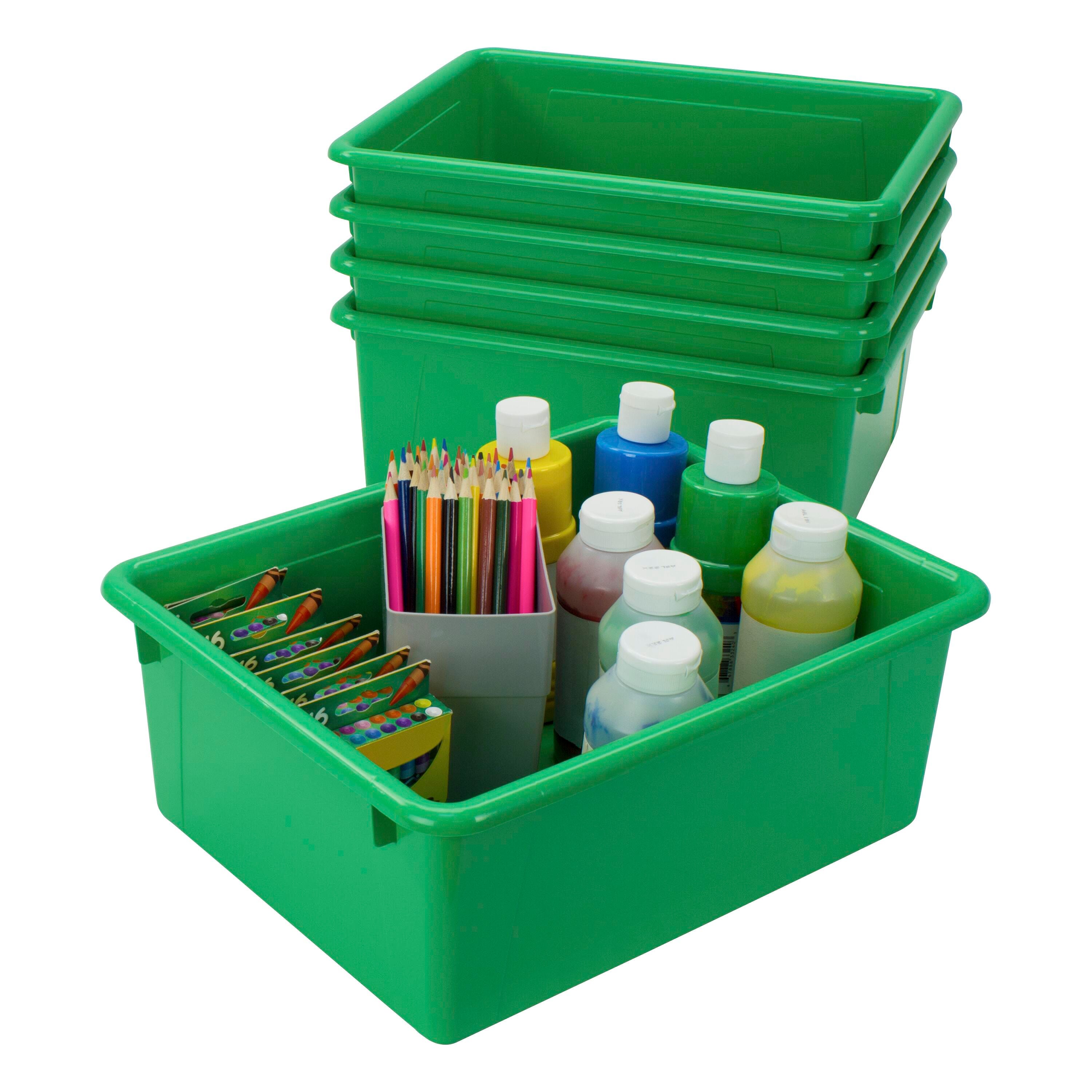School Smart green storage bins are designed to neatly organize all your letter-sized handouts, booklets, and papers. Our letter size plastic storage containers are made of nonporous plastic and are dishwasher-safe and drop-resistant. Whether you’re teaching STEM or STEAM, the bright-colored totes help with classroom organization, and your imagination sets the limit. Use the plastic bins for elementary schools, kindergarten, preschool, childcare centers, and playrooms. Each box works well as a school supply storage bin, arts and crafts container, toy organizer, and more.