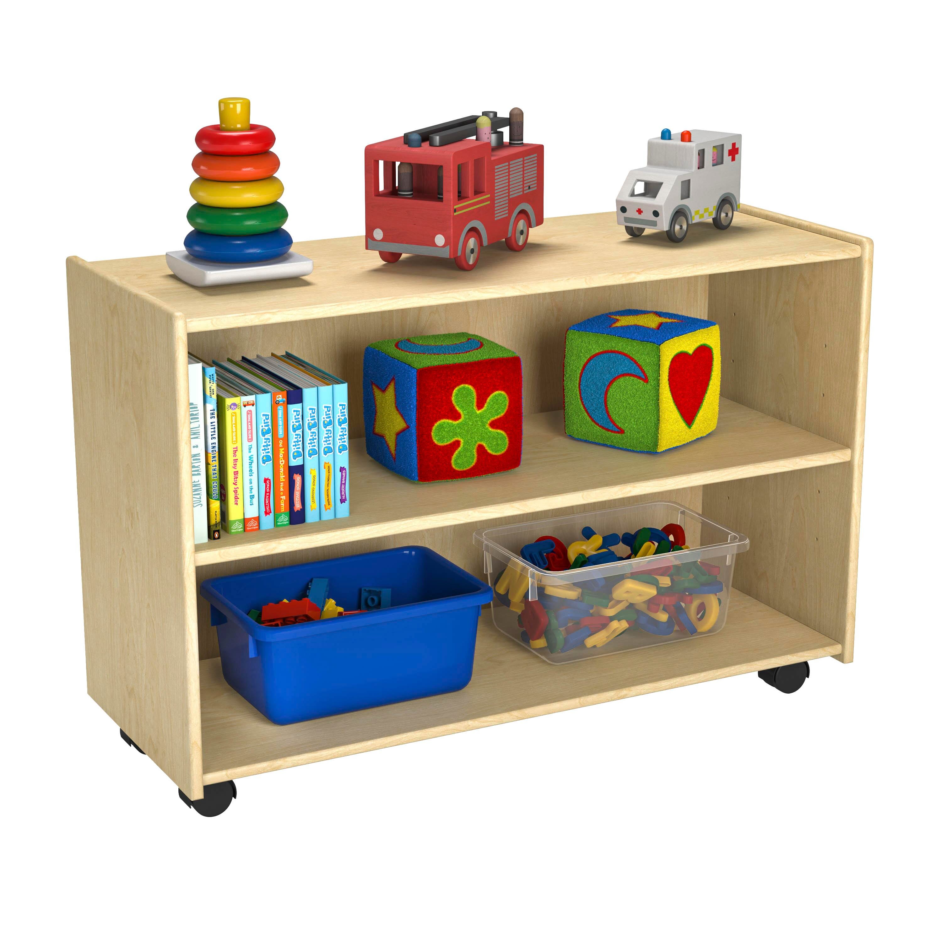 The Childcraft® Mobile Open Adjustable Shelving Unit provides a flexible and functional storage solution for early childhood classrooms, childcare centers, libraries, or playrooms. With a height designed for young learners, this 2-shelf cabinet offers open access to books, puzzles, and more, making independent learning easy and safe. The adjustable shelf allows you to customize the interior for your specific storage needs. The durable birch plywood construction ensures the bookcase stands up to daily classroom use. Four heavy-duty, dual-wheel locking casters make repositioning easy and secure. Comes fully assembled. Measures 35-3/4 W x 14-1/4 D x 24 H inches.Features