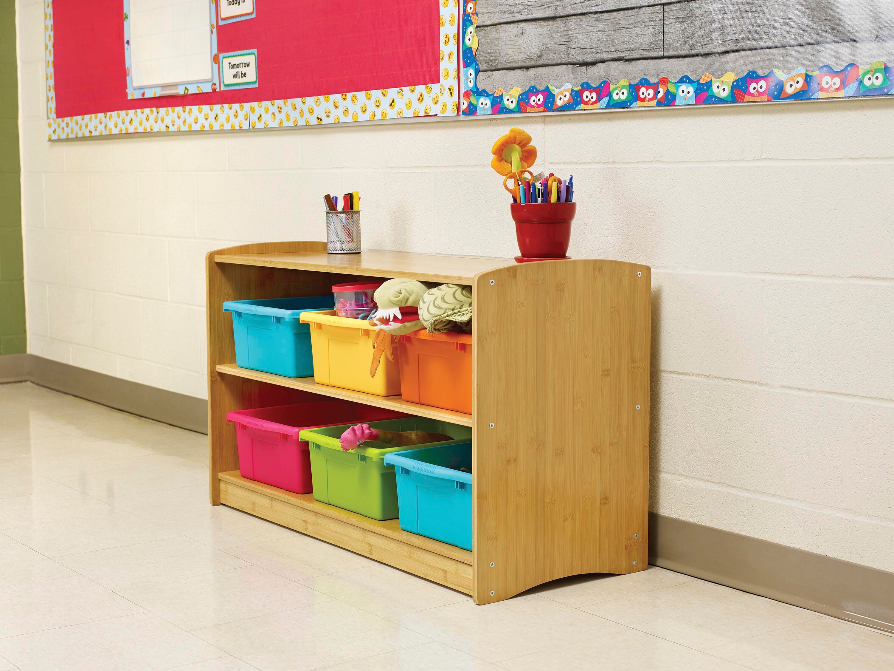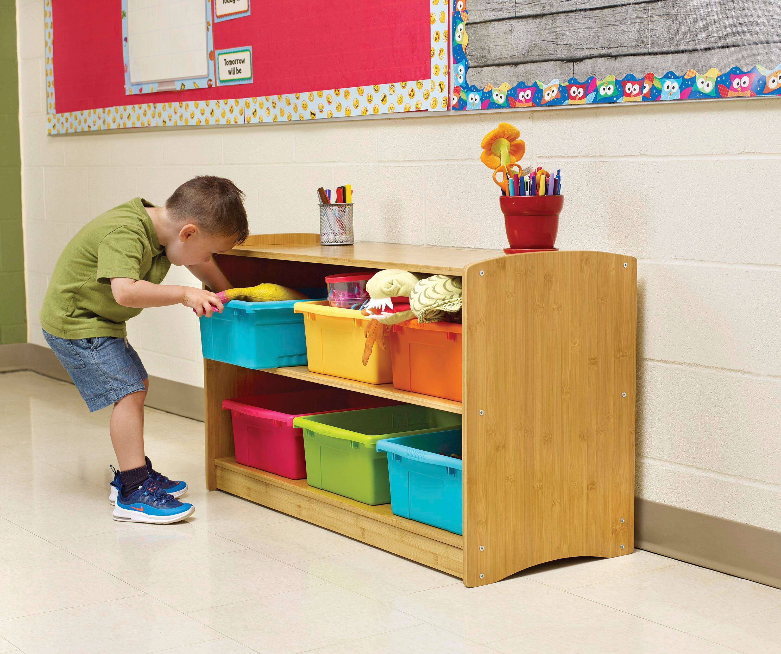 The Bamboo Book Shelf has a natural aesthetic suited for neutral and early childhood environments. With three shelves for storage and optional six-tub configurations, this Bamboo Book Shelf is at the ideal height for ECE students and educators to access learning materials, books and other supplies. Bamboo is a renewable resource that grows quickly and sequesters carbon, unlike steel which produces carbon. For every bamboo product purchased, Copernicus will make a donation to conserve natural panda habitat through the World Wildlife Fund.