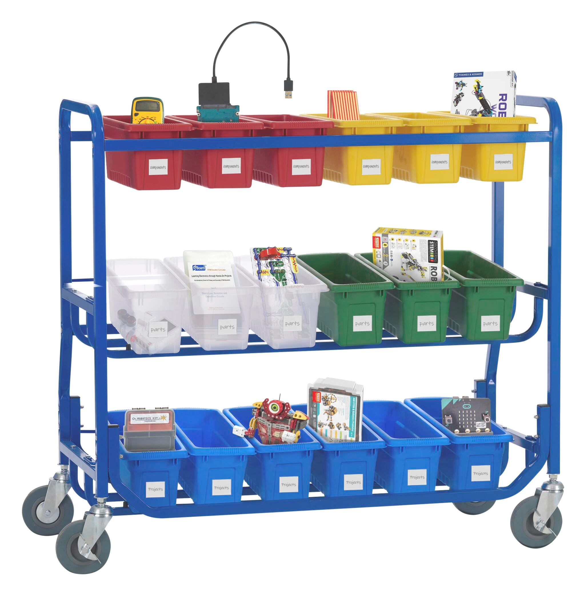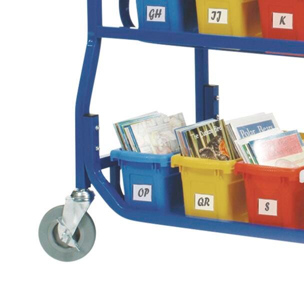 Copernicus Library on Wheels With 18 Small Tubs was designed for schools and classrooms making the transportation of books easy and effortless. This sturdy cart is ideal for literacy programs, reading stations, and room-to-room book sharing. Includes 18 Small Book Tubs and adhesive name pockets for tubs. 5 in casters, 2 locking. Frame measures 51 W x 18 D x 40 H inches; Small Open Tubs measure 6 W x 15 D x 6 H inches. 10-year frame warranty; Lifetime Tub Warranty.