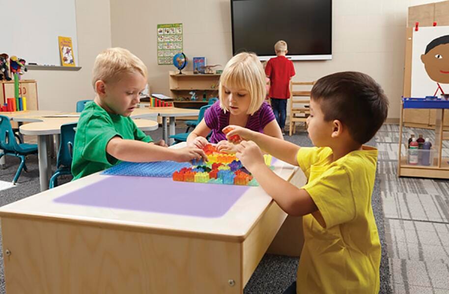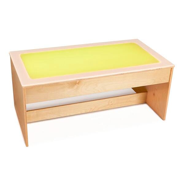 Description This is the ultimate light table! With 16 colors (including white), five modes (solid, flash, strobe, fade, and smooth), and brightness control, you will captivate the minds of young learners! Combine with colored elements to teach lessons on mixing colors of light. You can also use this light table to create either subtle mood lighting or a dramatic effect to supplement story and rest time. The LED lights are energy-friendly, built to last rated for 50,000 hours, and are CSA listed for use in the US and Canada. Comes with infrared remote and battery. Dimensions 42-1/2 W x 22-1/2 D x 18-1/2 H inches. Weight 52 pounds.