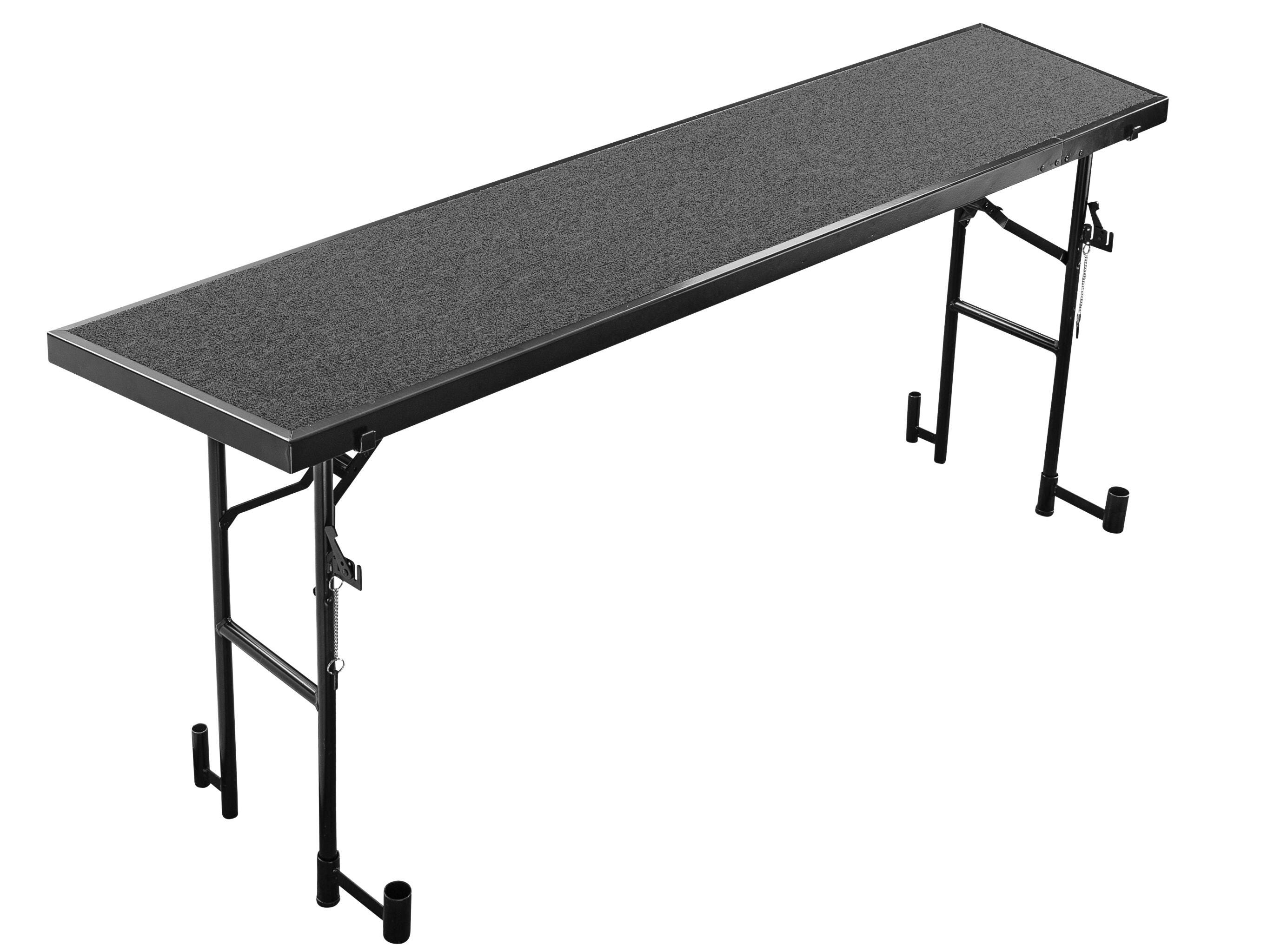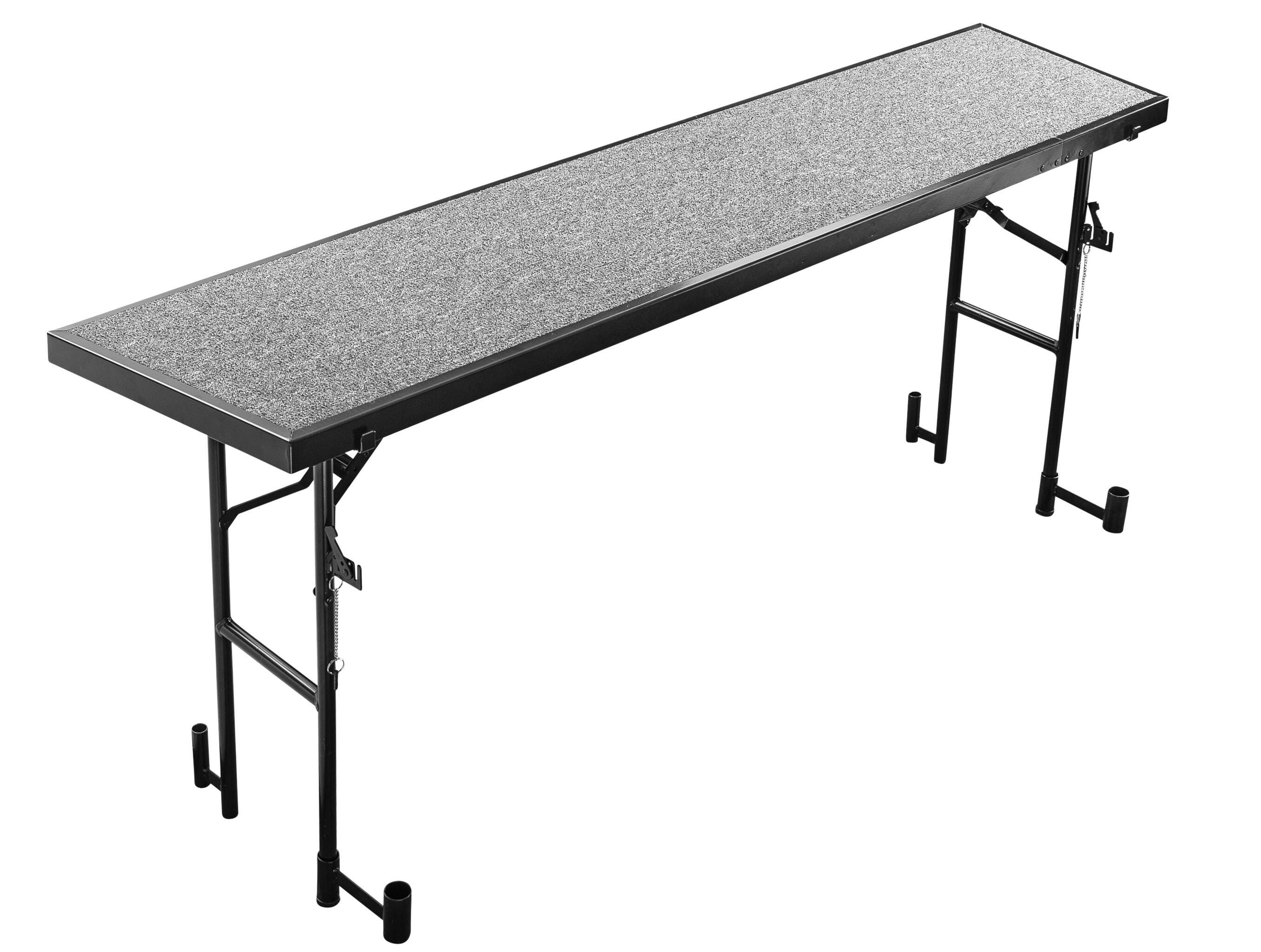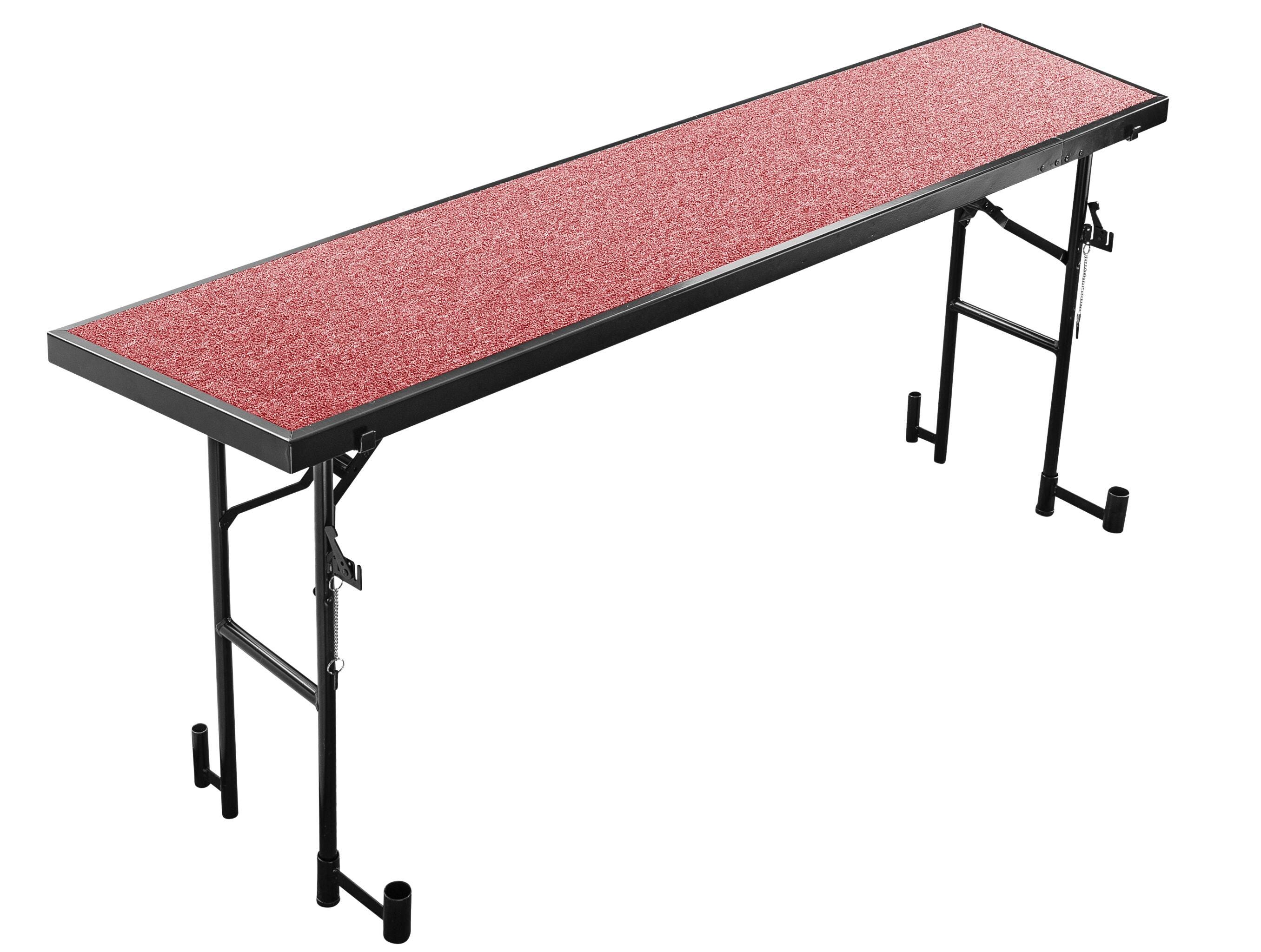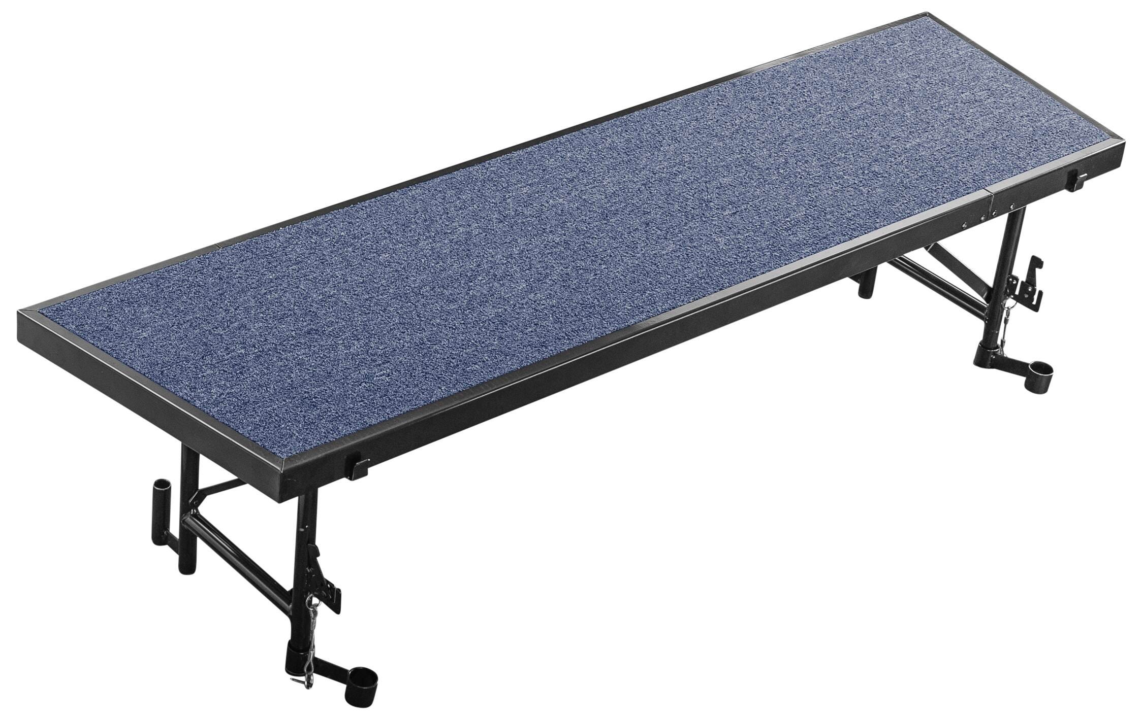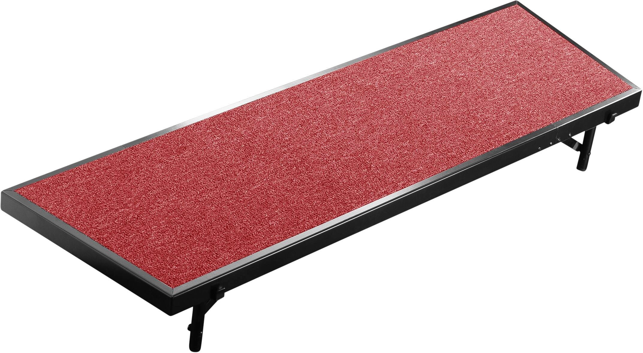 The Tapered Portable Standing Riser by NPS has a durable 16-gauge steel frame, and premium grade 3/4-inch solid plywood core covered with carpet. Legs are made with 14-gauge tubular steel capped at the point of floor contact with high-impact plastic glides. Riser equipped with drop-in couplings that allow units of the same or different heights to be joined together. All ganging devices are permanently secured to each unit and can be easily attached to one another to build multi-level heights. The riser is easy to set up and allows for quick continuous or semi-circle arrangements for all performance venues. Optional Guardrails for safety are sold separately