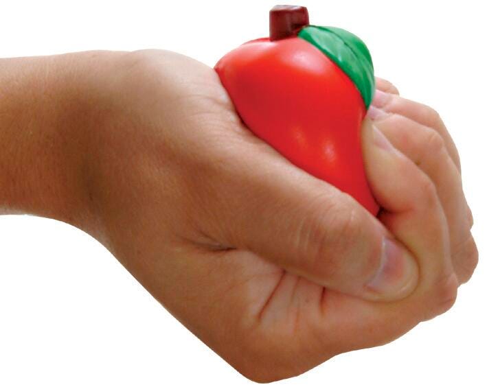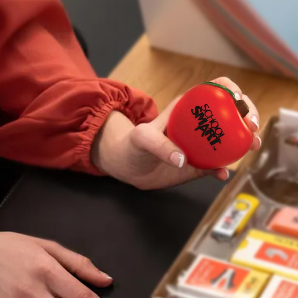 Description The School Smart red apple stress ball is designed to help relieve stress. Just squeeze the foam ball during times of tension to enhance your mood. Our apple shaped stress ball will regain its shape after squeezed, and can be used over and over again.Features The apple stress reliever makes an excellent gift for your favorite teacher or administrator Bounce-back foam design helps alleviate stress when squeezed The apple stress reliever is fun and affordable