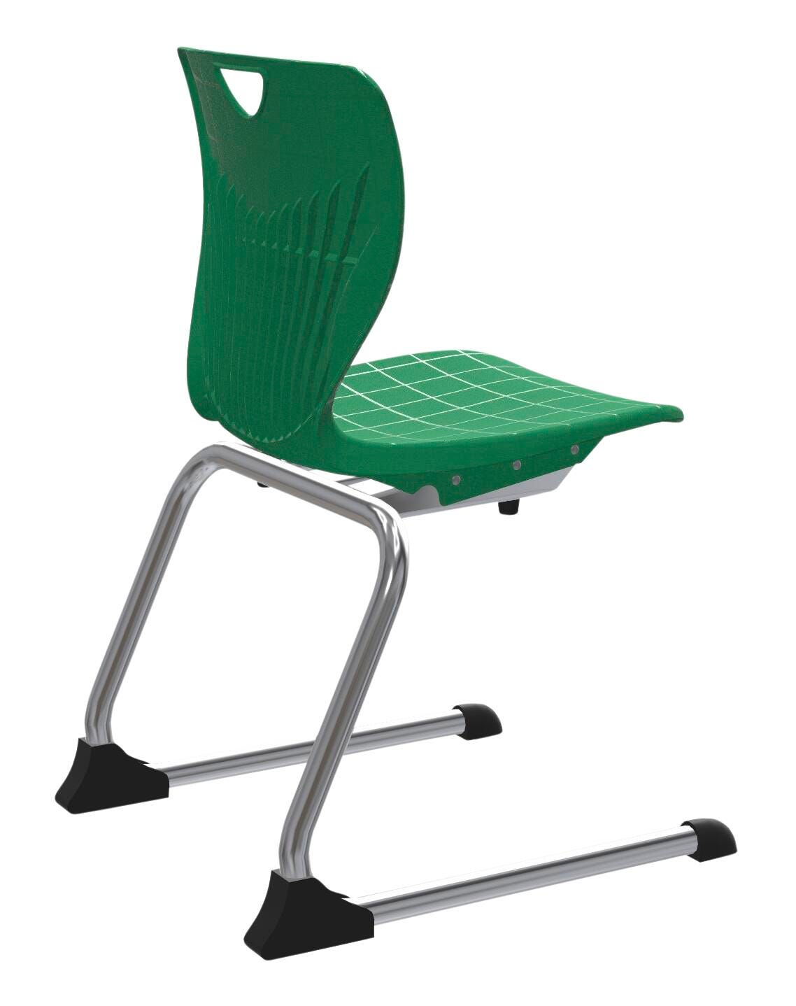 This stylish chair features a contemporary one-piece soft plastic polypropylene shell that is designed ergonomic for comfortable classroom seating wherever. Set on a cantilever chrome frame for an elegant appearance. There is a convenient handhold in the upper back that allows for easy carrying and four strategically placed rubber bumpers on the underside of the seat to prevent marking when the chair is placed on a desk. Available in several seat heights, frame materials, frame colors, seat & back colors, and more. Please select what fits your space best when ordering.