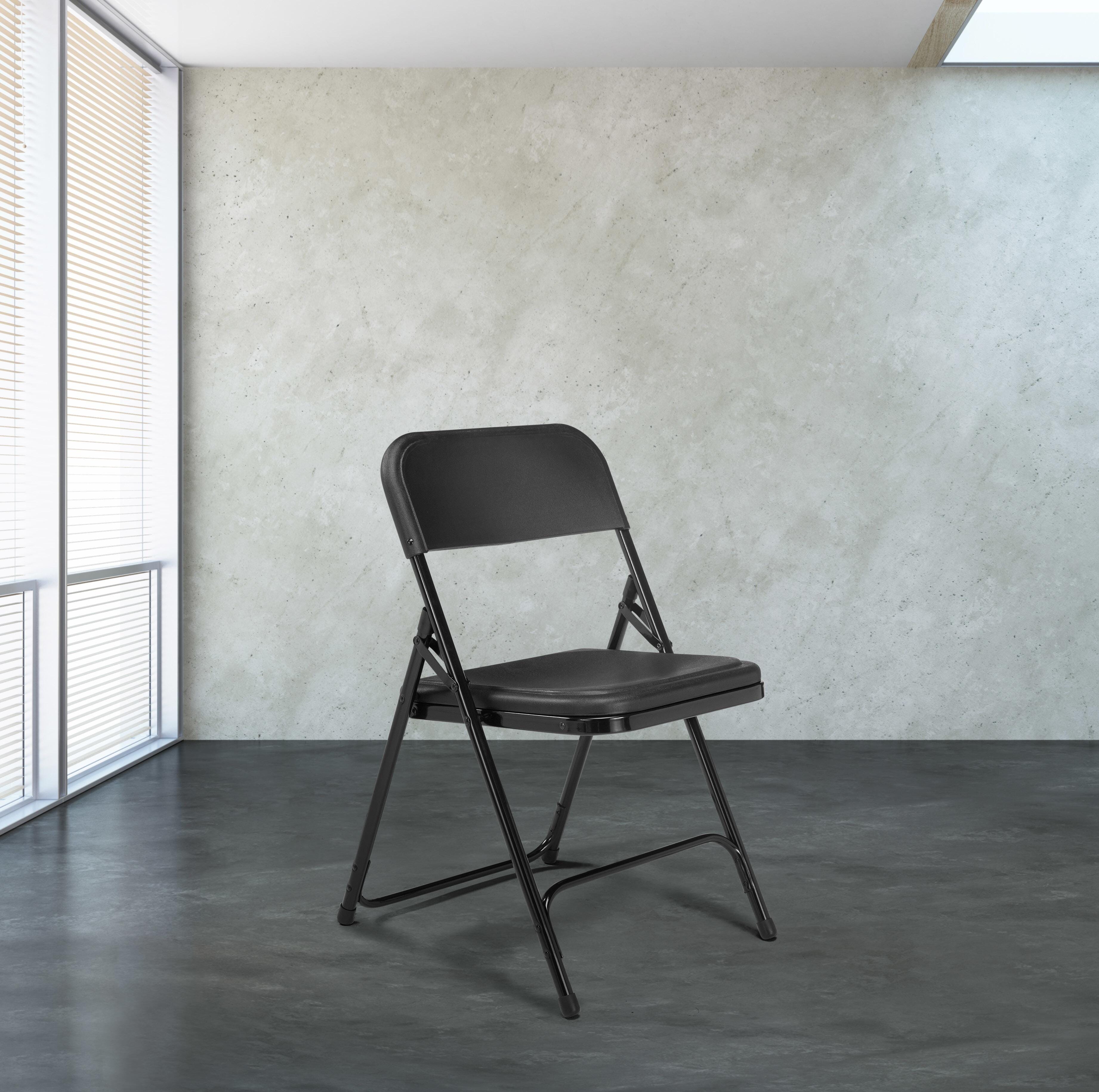 National Public Seating 800 Series Premium Lightweight Plastic Folding Chair, Black, 18-Inch Seat Height, Pack of 4