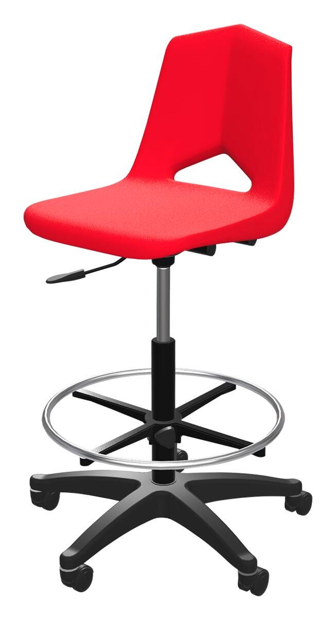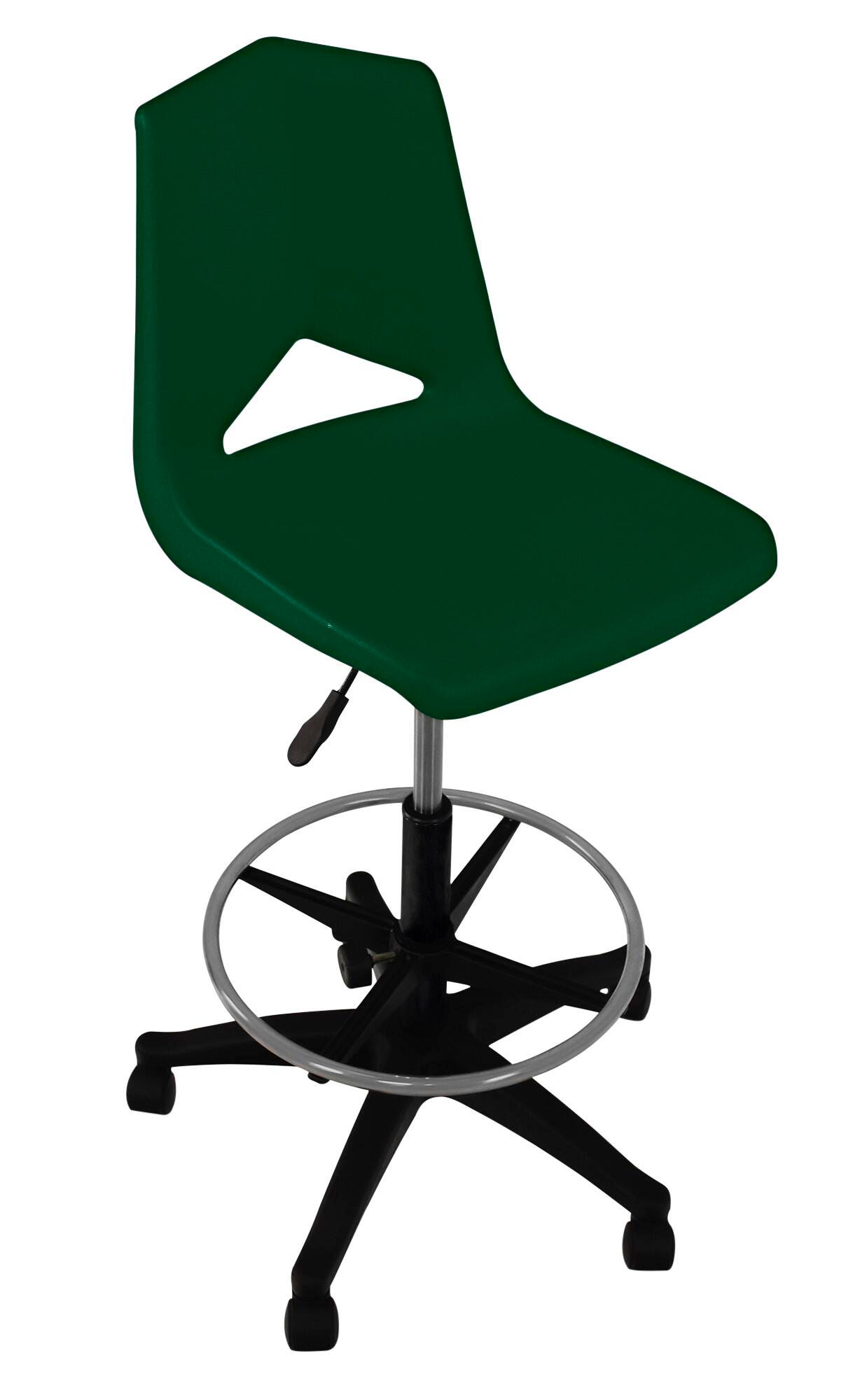Choose this task chair for classrooms, computer labs, and offices. The waterfall one-piece durable polypropylene shell offers ergonomic advantages and promotes circulation and support. The sturdy 5-star base has a 24-inch diameter, swivels 360 degrees, and features durable 2-inch dual casters. With an adjustable pneumatic height of 24 to 34 inches, and a simple turn handle to adjust the 20-inch foot ring this chair is comfortable at any height.