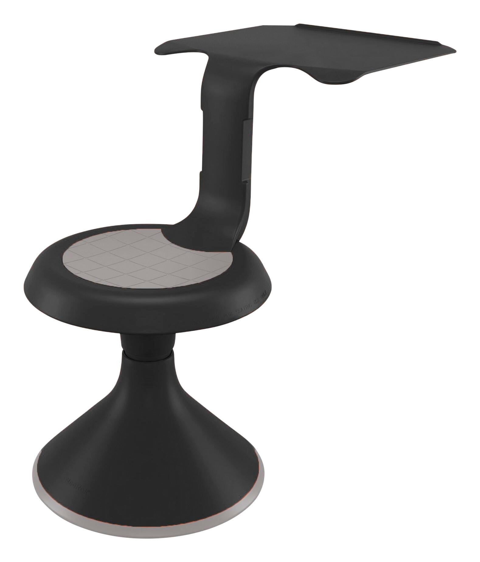 Expanding the capabilities of the popular Adjustable-Height NeoRok movement stool, the NeoRyde features an integrated desktop-like surface that is perfect for note-taking or use with up to a 14 inch size laptop. Ample space between the seat and table surface is ideal for any age group. With its sleek modern shape featuring beveled corners, integrated hand grip, and height-adjustable seat, the ergonomic NeoRyde was designed with comfort in mind. It has a non-skid rubber base keeps stool secure and also protects your floors and even comes fully assembled for your convenience!