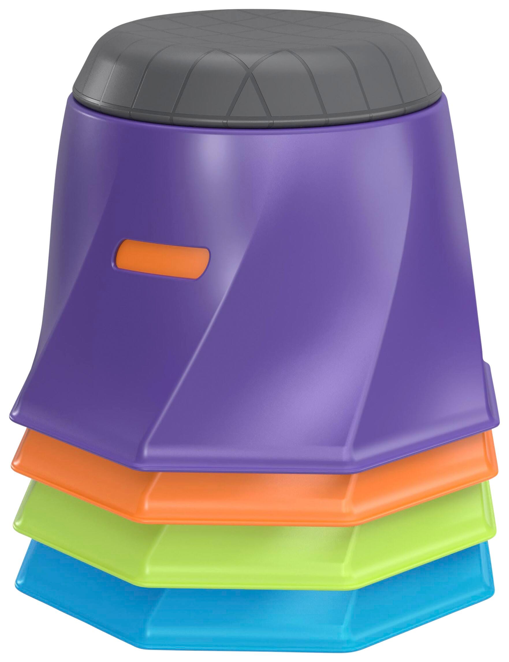 Durable, wipe-clean stool provides an easy active seating solution that also is used as a place to kick up your feet or turn over and use as a storage bin