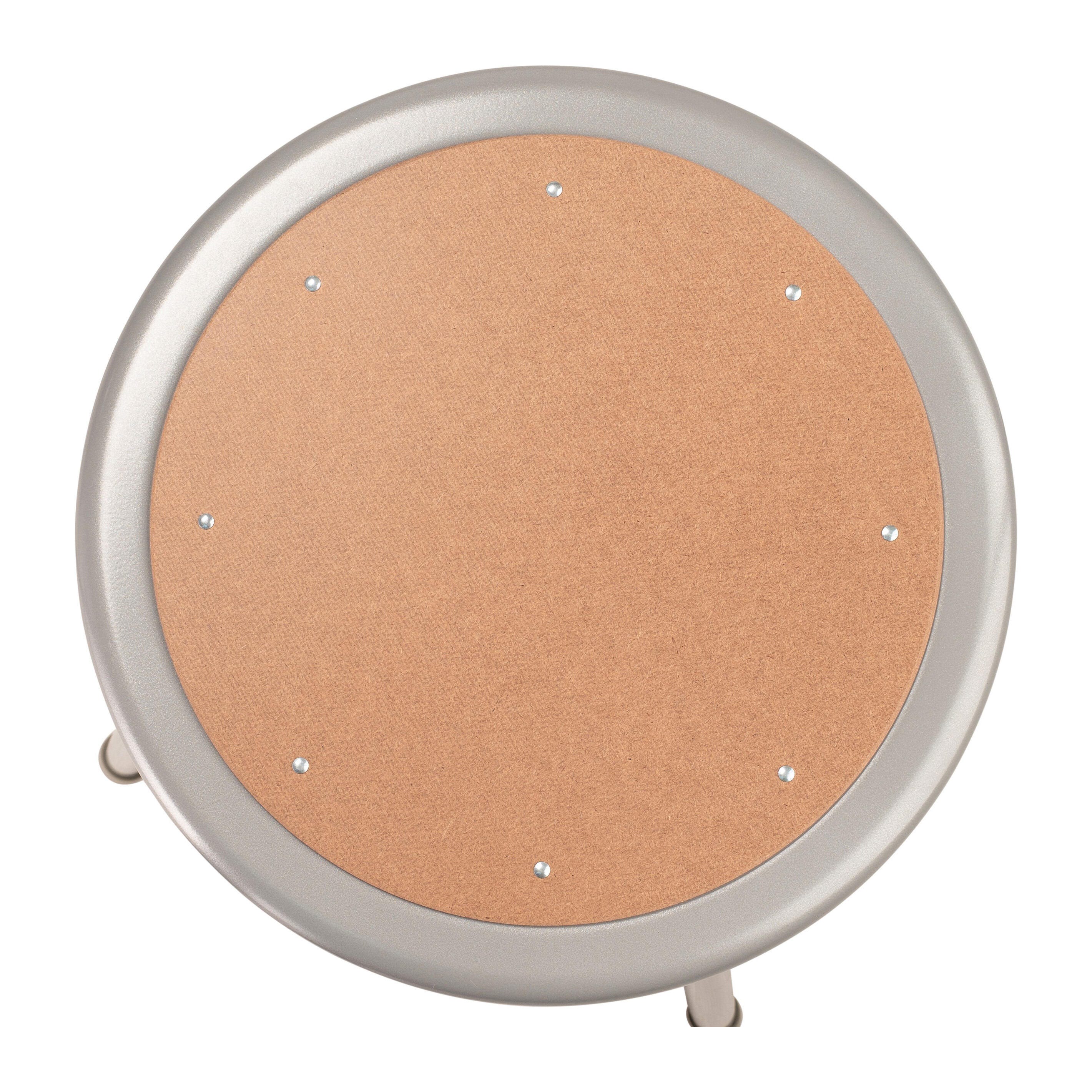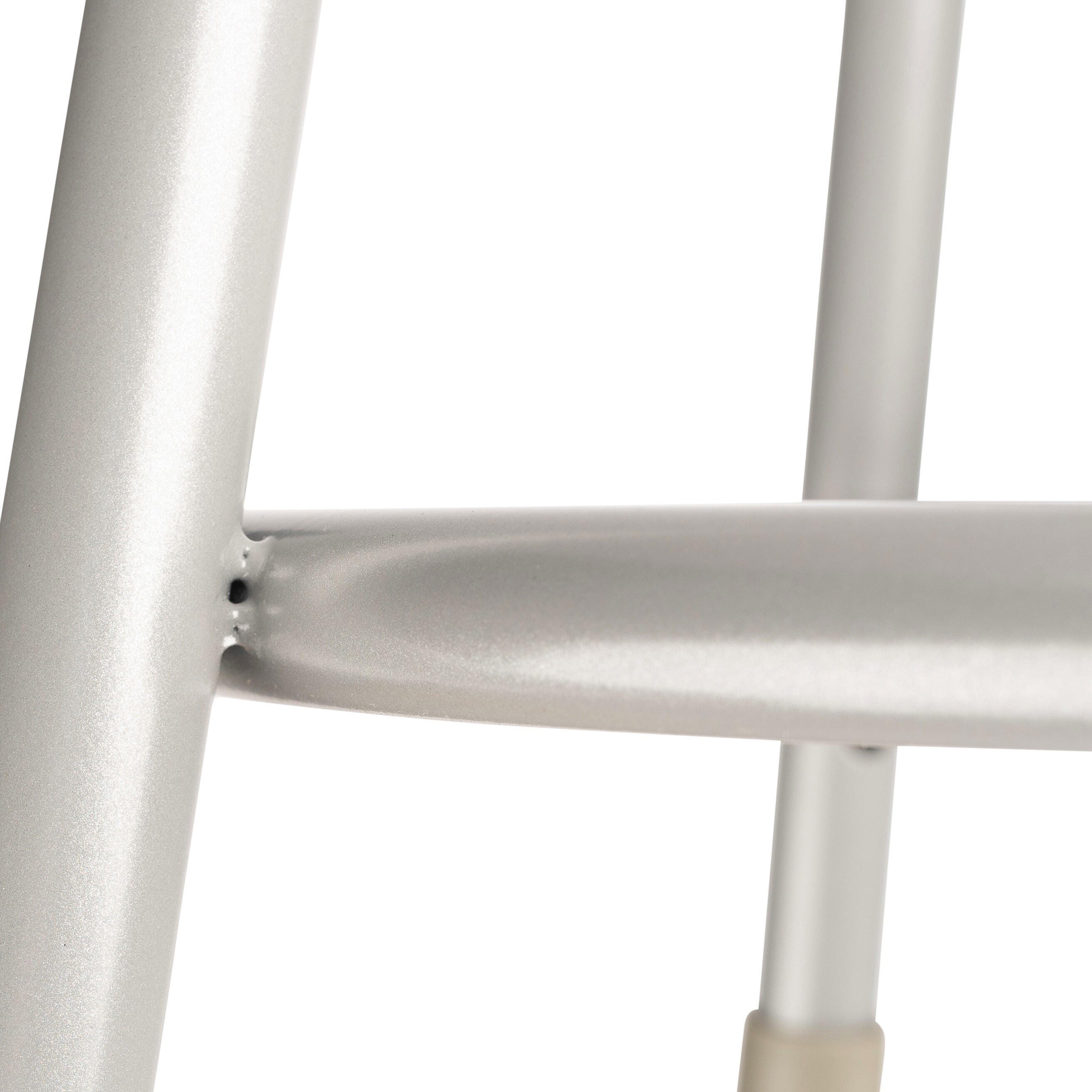 Stool is made from quality steel with an enameled surface. Tubed legs have an outside diameter of 7/8 inch and are made from 18-gauge steel tubing. The bottom of each leg has non-marring polypropylene glides. Seat is 14 inch diameter and has an 11-1/2 inch diameter recessed Masonite board riveted into the pan and will not chip or crack. The 5/8 inch outside diameter foot ring is welded into each leg by 4 contact points at each leg for added rigidity. Certified Green and includes a 10 year warranty.
