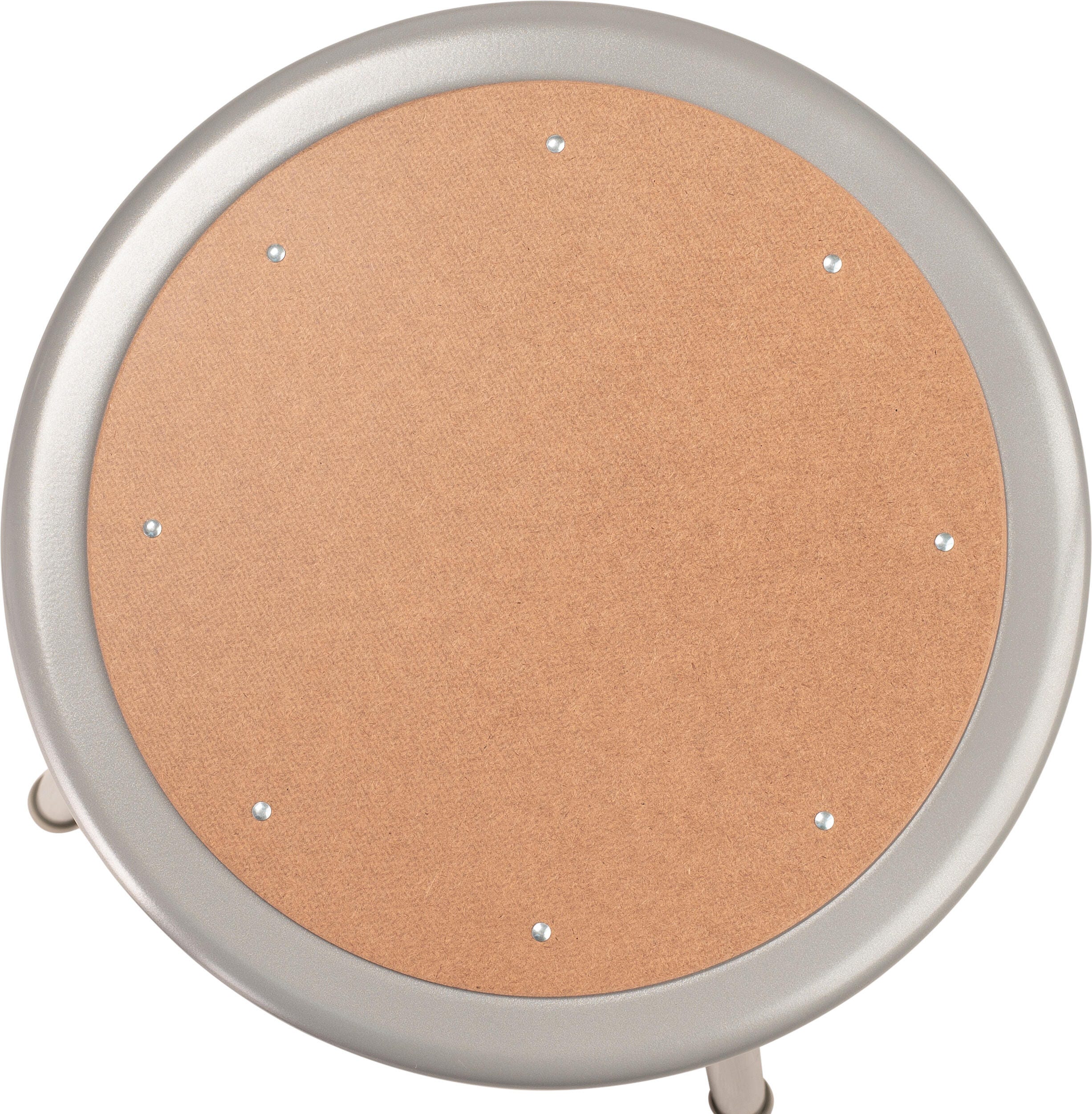 Description National Public Seating Gray Enamel Quality Steel Adjustable Height Stool adjusts inch seat height from 31 to 39 inches and has self-leveling glides. Stool featuring hardboard inset riveted onto a 20-gauge steel seat pan comes with 14 inch diameter seat. Each 18-gauge 7/8 inch diameter leg of the stool is welded to a 5/8 inch foot ring.
