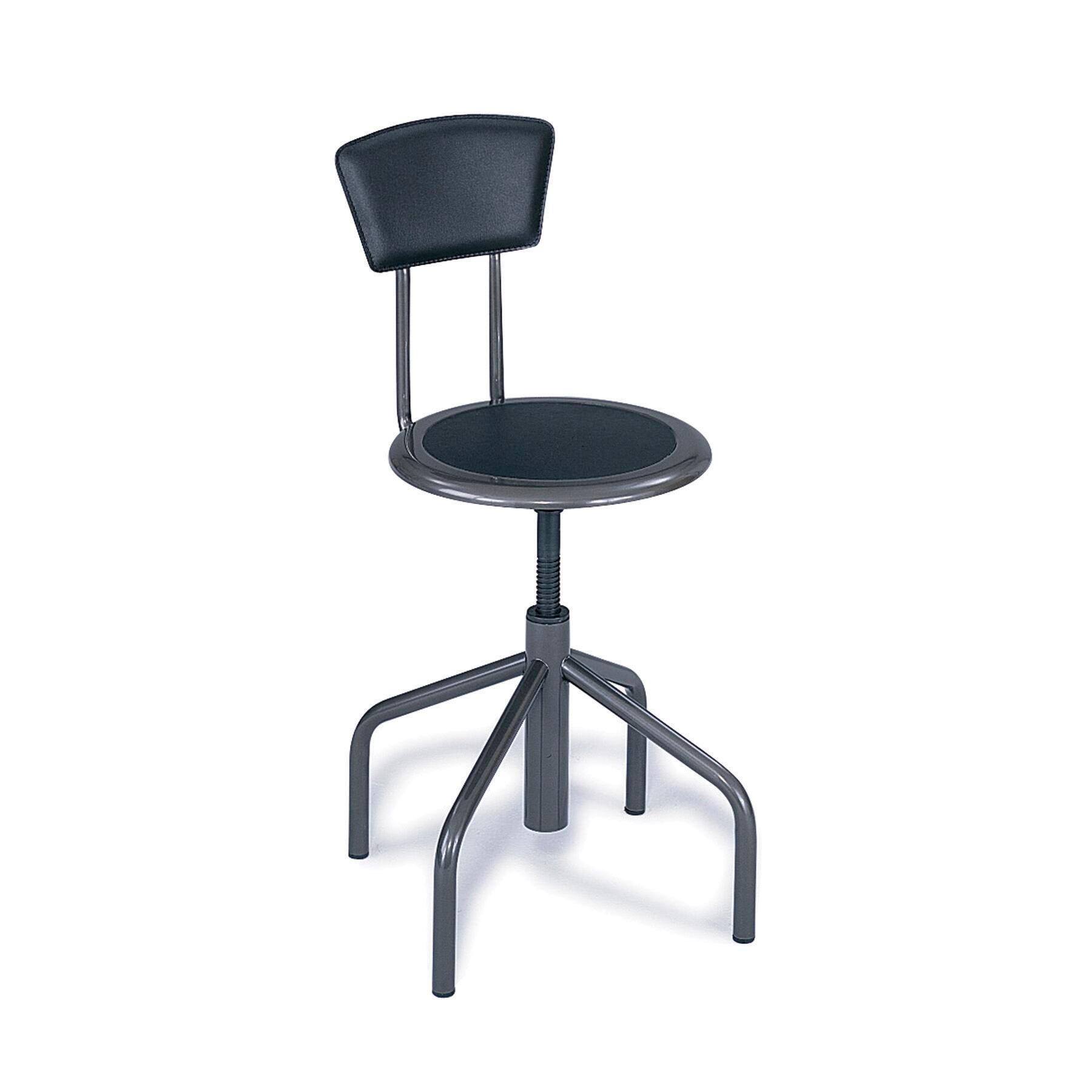 Safco Diesel Stool with Padded Seat and Backrest, Steel, Leather Seat, Black