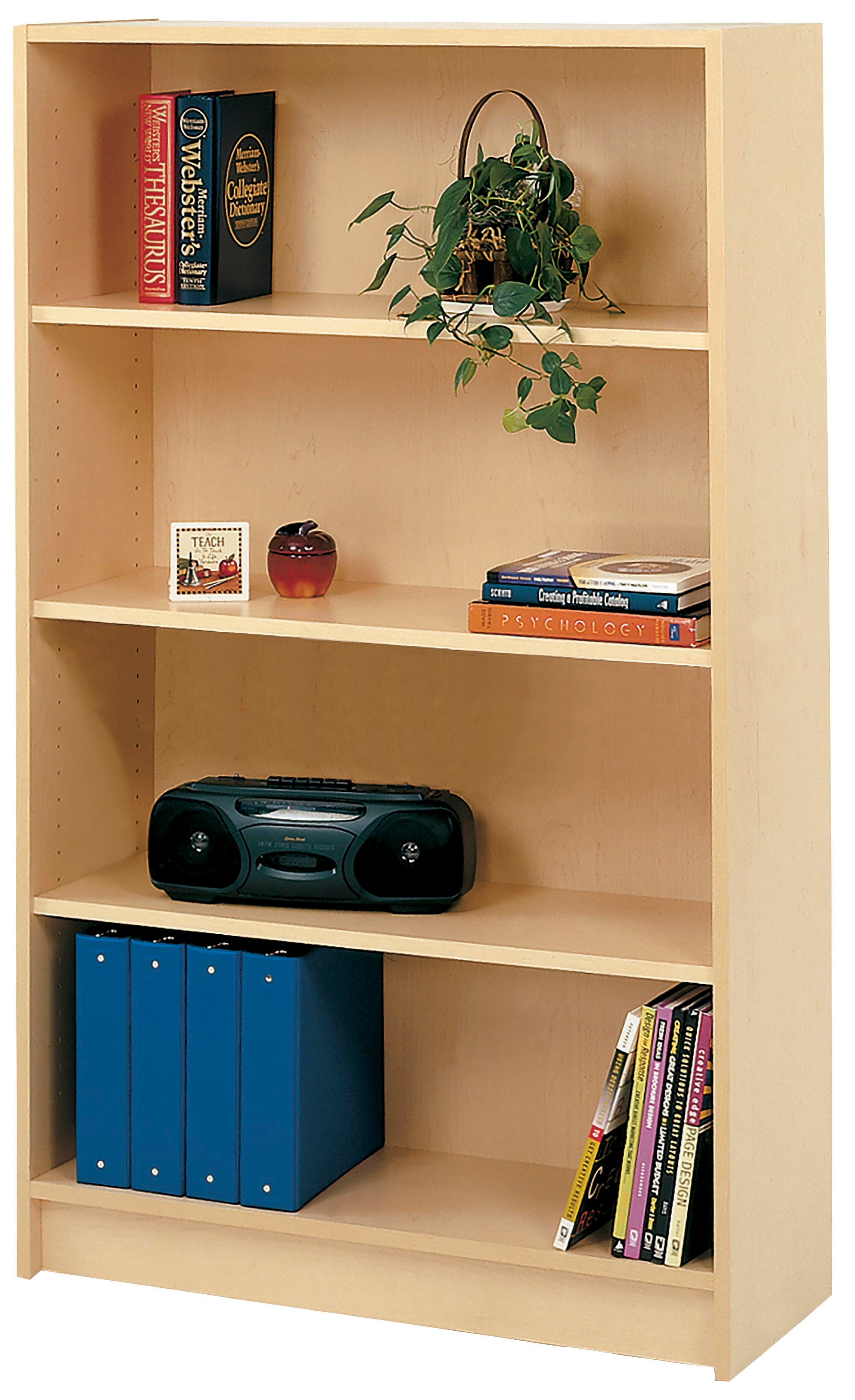 Bookshelf with two adjustable shelves and two fixed shelves is perfect for any classroom or office. It has 3 mm high-impact edges that can withstand the toughest conditions that come along with high-traffic areas. The 1-inch thick shelves are adjustable in 1-1�?�4 inch increments and are designed to hold heavy items. Shelves have a five-point support system to provide additional support, so no need to worry about your shelves sagging over time. The back is 3/4-inch thick for superior strength. Bookcase measures 36 W x 12 D x 59 H inches. Bookcases must be securely anchored to a building structure.Features