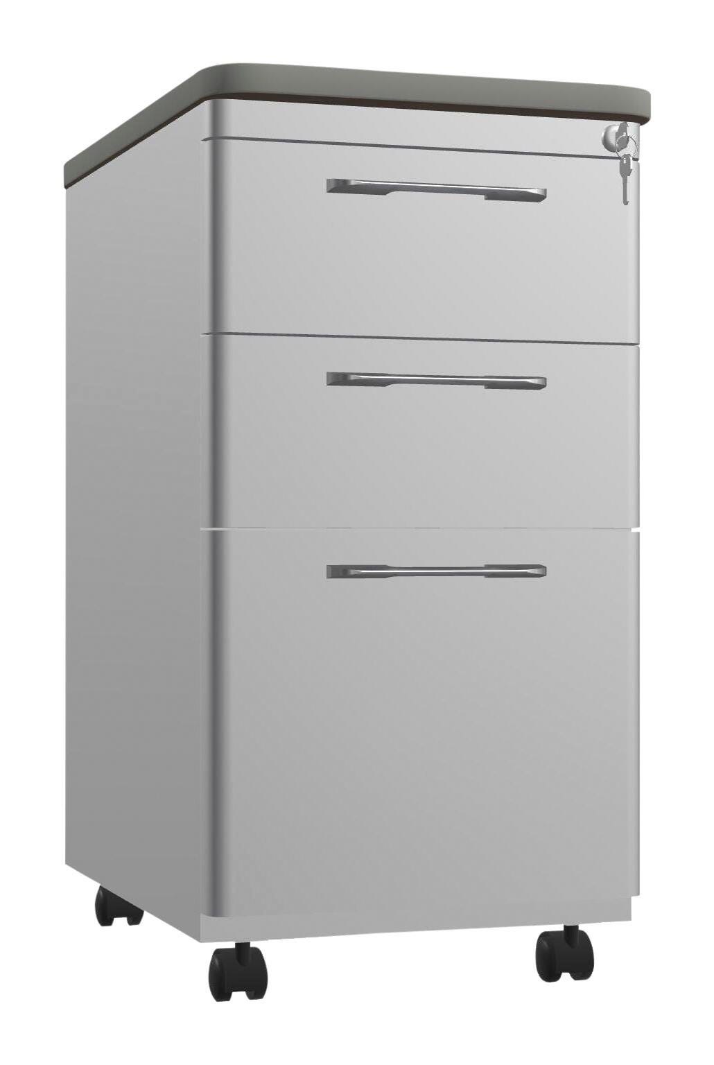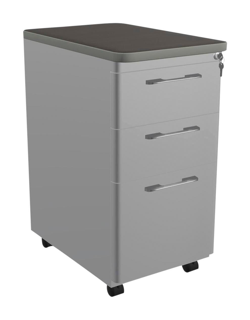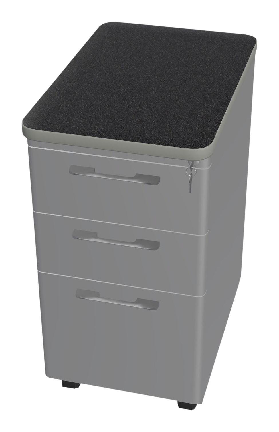 A desk top and mobile storage in one! This file cabinet has 3 locking complete-extension drawers. The top 2 drawers are perfect for supplies or additional folders, while the largest bottom/third drawer serves as a vertical file cabinet large enough to accommodate standard hanging files. Standard heavy-duty casters means this is your mobile furniture solution, perfect for dynamic spaces that need extra storage. Measures 15 W x 23-1/2 D x 30 H inches. Pedestal features a lock to keep all your items secure. Please select your color option when ordering.