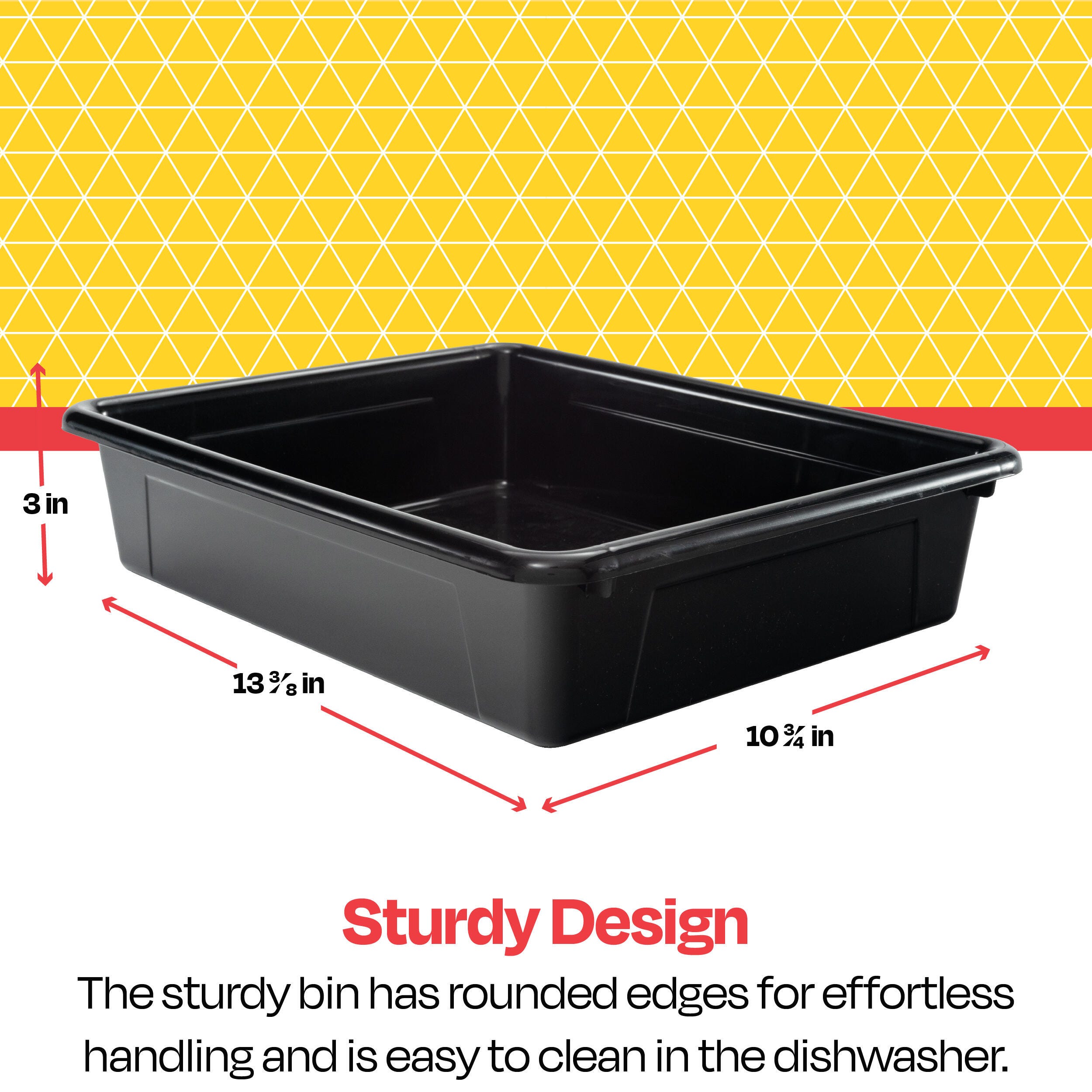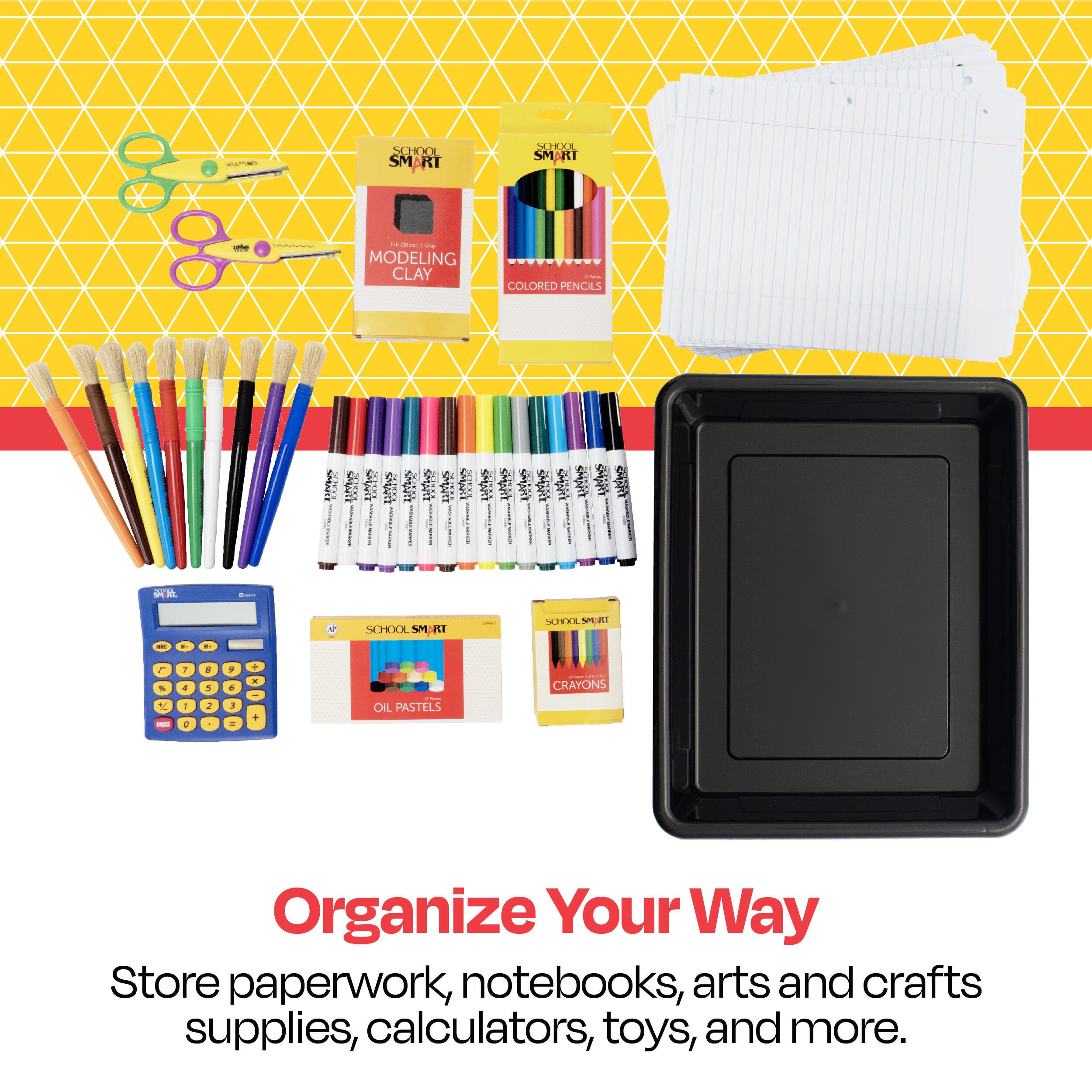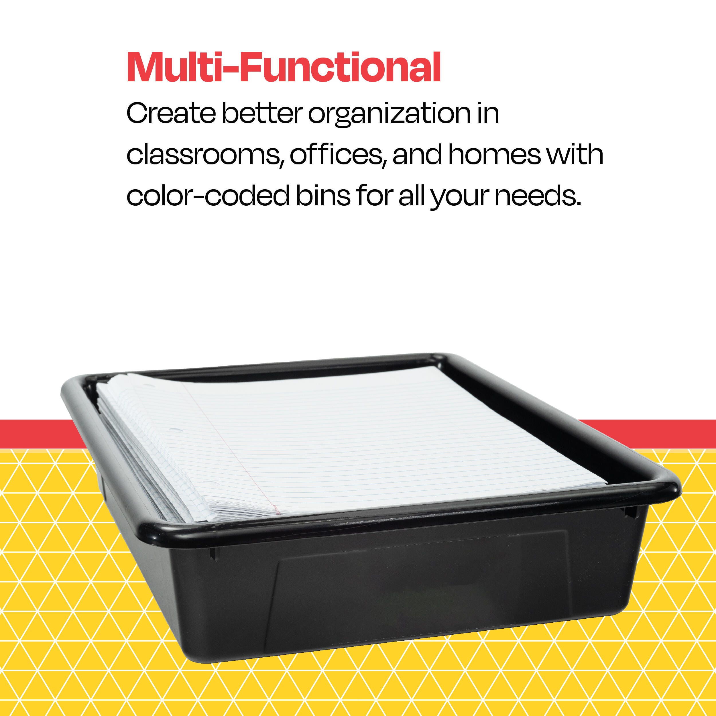 School Smart black storage trays are designed to neatly organize all your letter-sized handouts, booklets, and papers. Our smaller letter size plastic storage containers are made of nonporous plastic and are dishwasher-safe and drop-resistant. Whether you’re teaching STEM or STEAM, the solid colors help with classroom organization, and your imagination sets the limit. Use the plastic bin for elementary schools, kindergarten, preschool, childcare centers, and playrooms. The box works well as a school supply storage bin, arts and crafts container, toy organizer, and more.