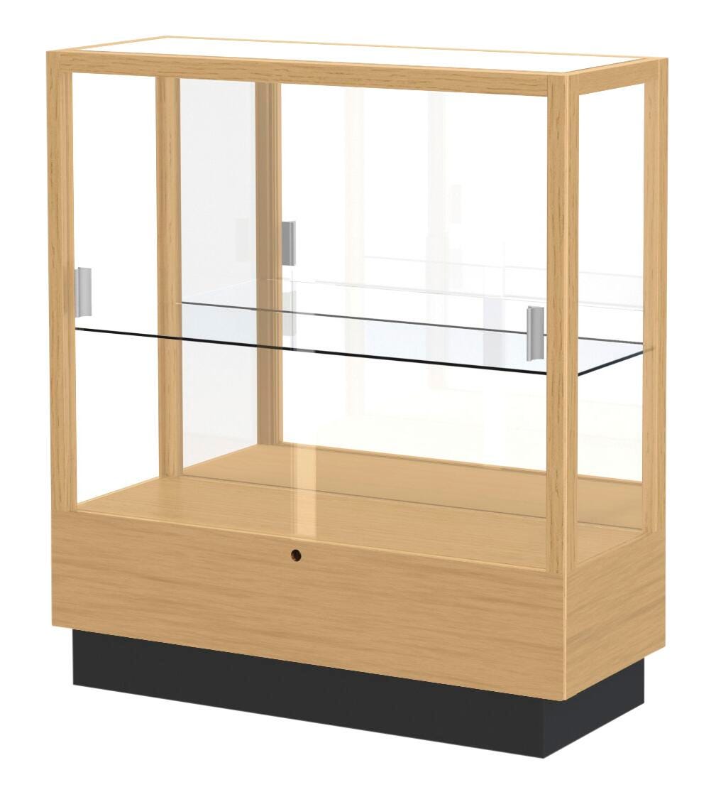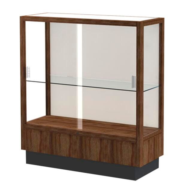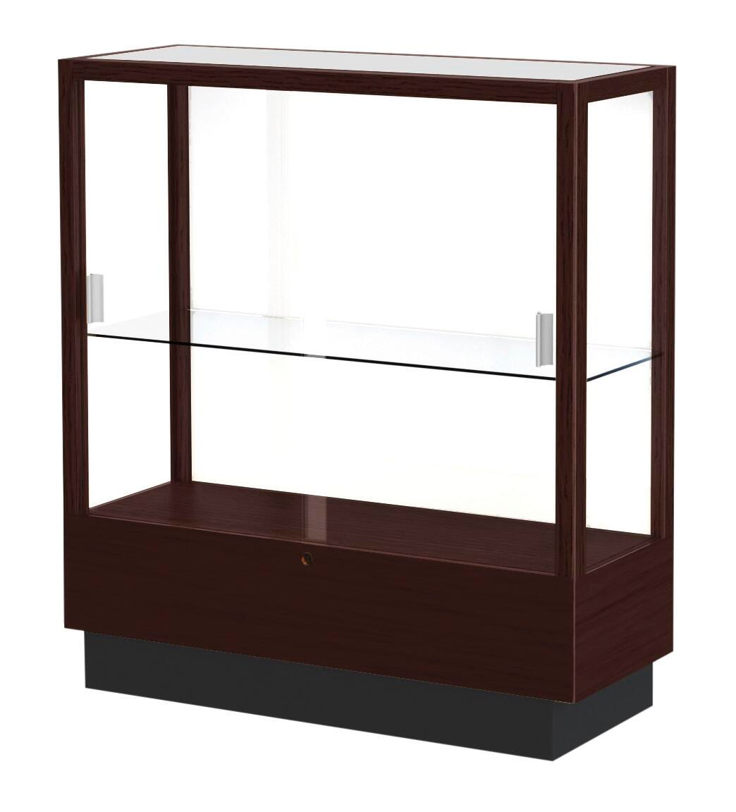 Ghent Heritage unlighted hardwood display cases featuring traditional good looks and solid construction. Wooden display case features sliding tempered glass doors with built-in locks for security and steel shelving hardware with floor levelers for convenience.