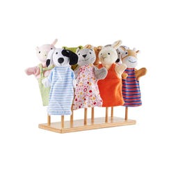 The perfect display for all of your puppet friends is Guidecraft's Puppet Stand. This solid hardwood puppet stand holds and displays eight hand puppets and fits well anywhere puppets are frequently used - in the playroom, library, reading room, childcare center, or early learning classroom. Classic, simple design fits with any natural aesthetic, built to be intuitive and functional for everyone to use. Puppets not included. Assembly is required. Perfect for children ages two and older.Features