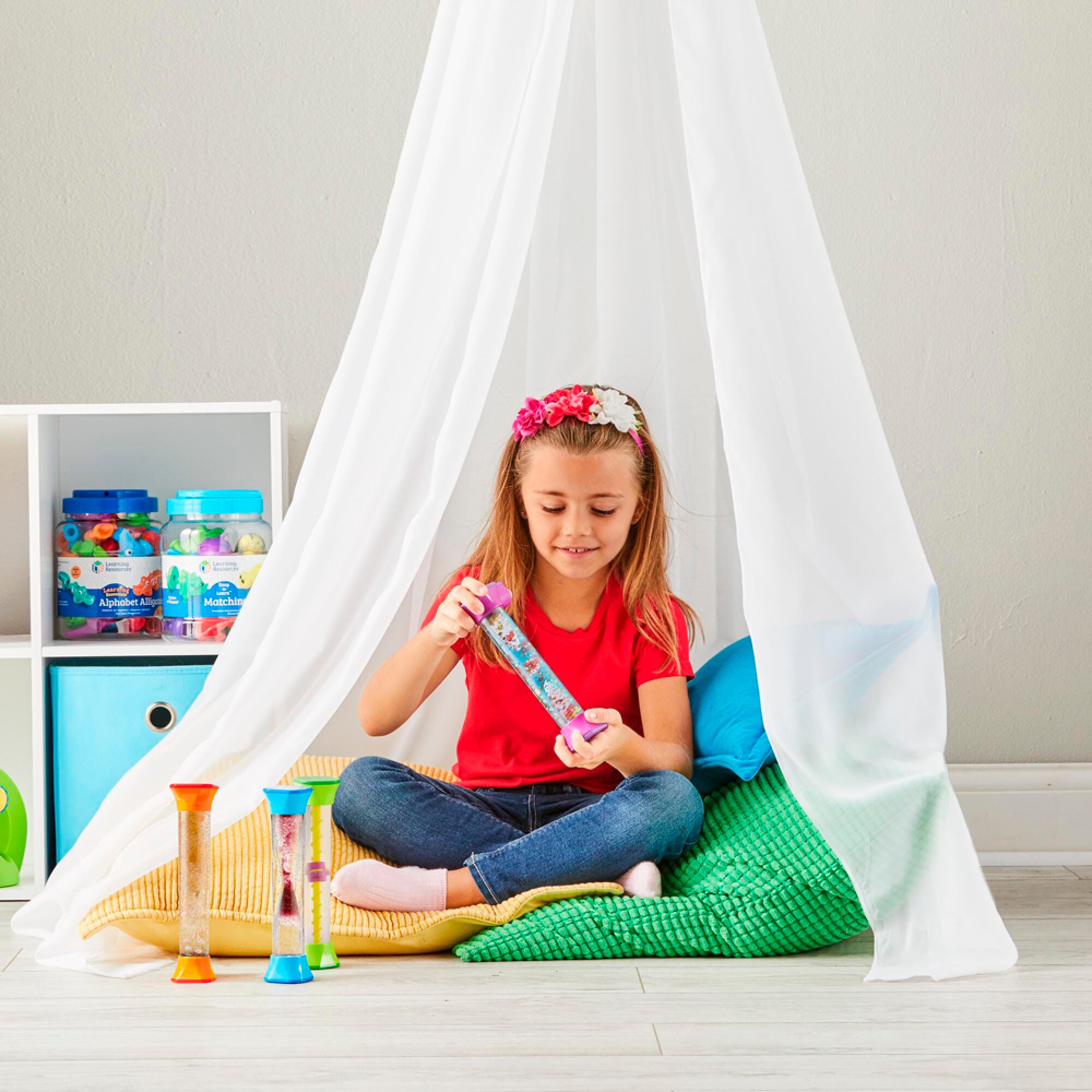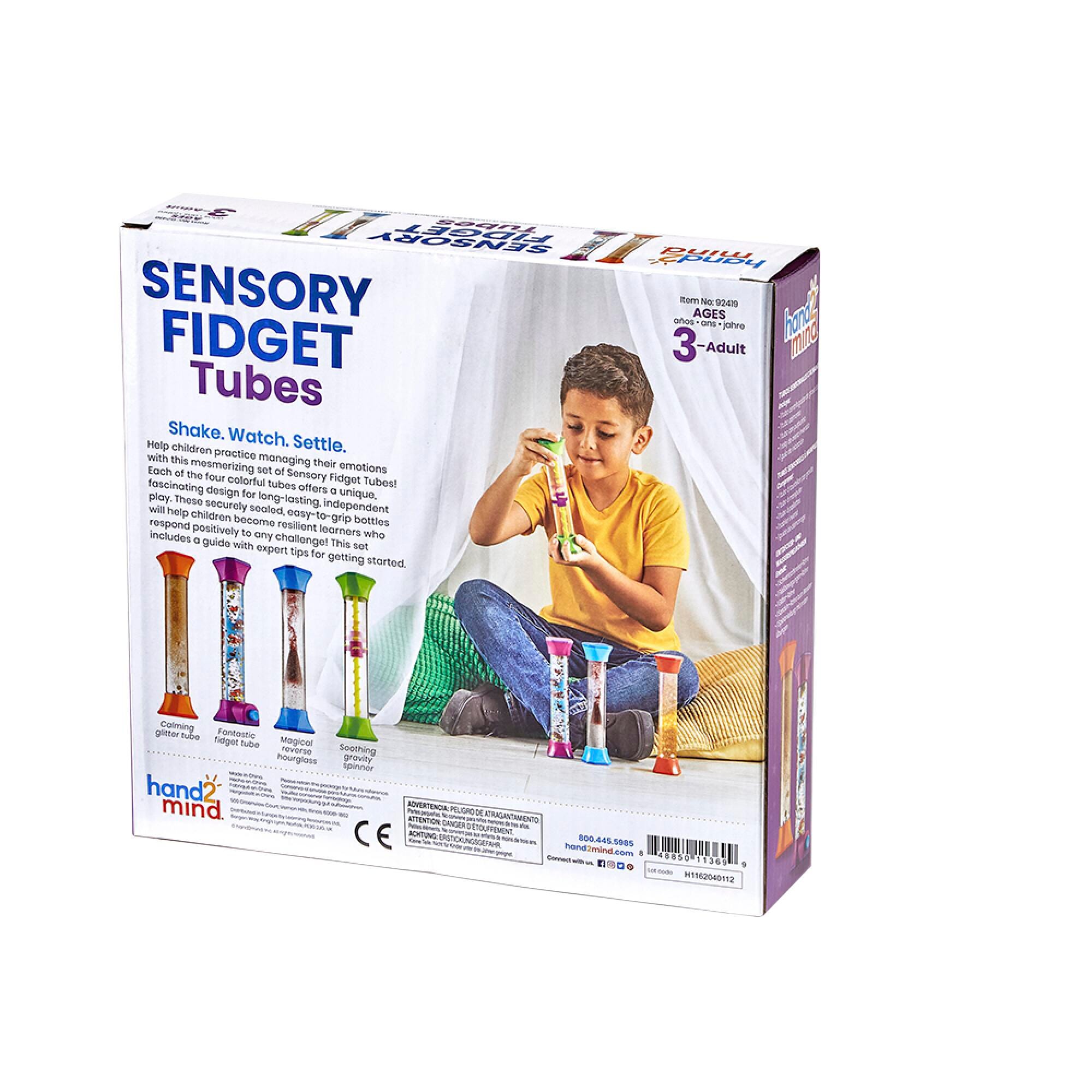 Description Mesmerizing tubes help children practice managing their emotions, focusing their attention, and quietly, calmly engaging with the world around them. Each of the 4 tubes offers fascinating movement patterns for long-lasting, independent play. Getting Started Guide includes tips on how to encourage social emotional learning. For ages 3 and older. Each fidget tube measures 2-1/2 W x 8 H inches.Features Designed durable with strong plastic, securely sealed to keep liquid in place Teaches self regulation and emotional intelligence through self-soothing interaction, perfect for on-the-go support Bright and colorful perfect for early color recognition and a more engaging play experience Easy-to-grip with smooth edges, perfect for little hands with developing motor skills Varying designs provide a more versatile play experience Includes: 4 Sensory Fidget Tubes Getting Started Guide