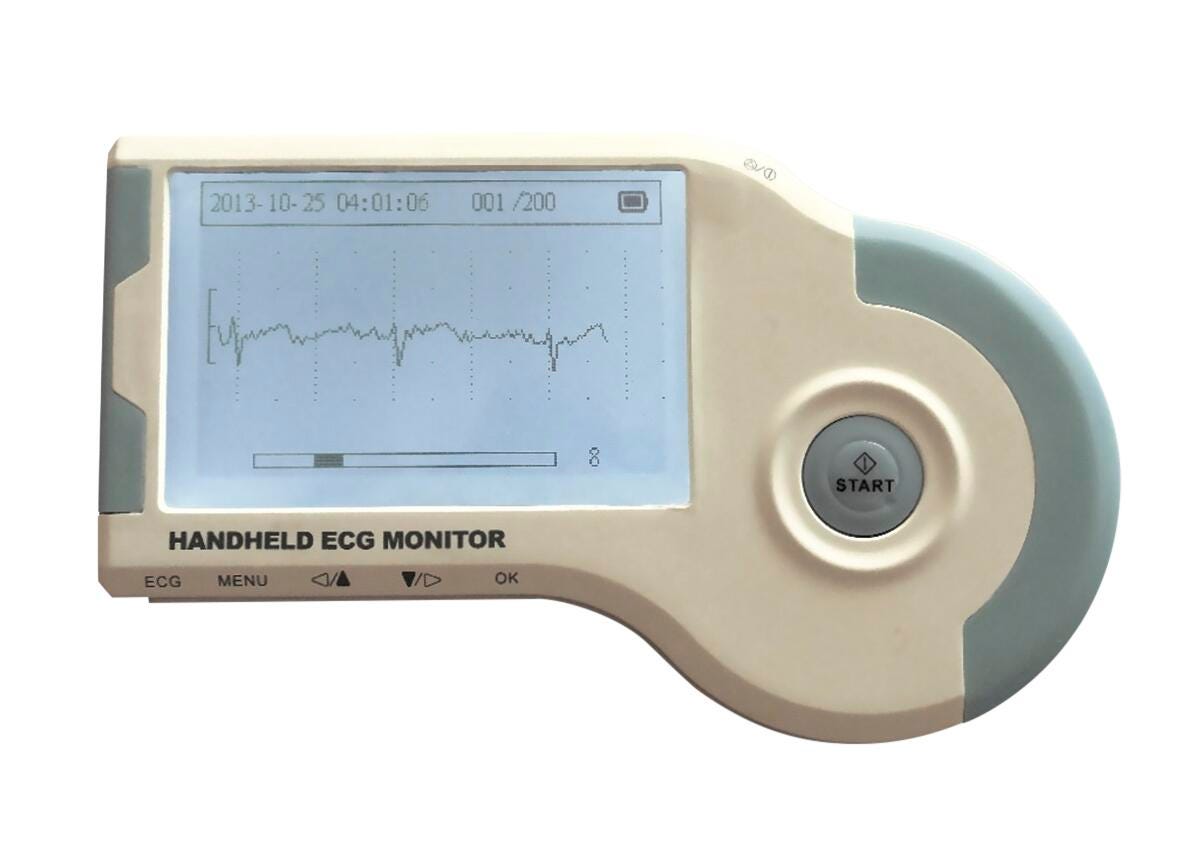 - Compact, handheld ECG monitor for quick heart rhythm checks