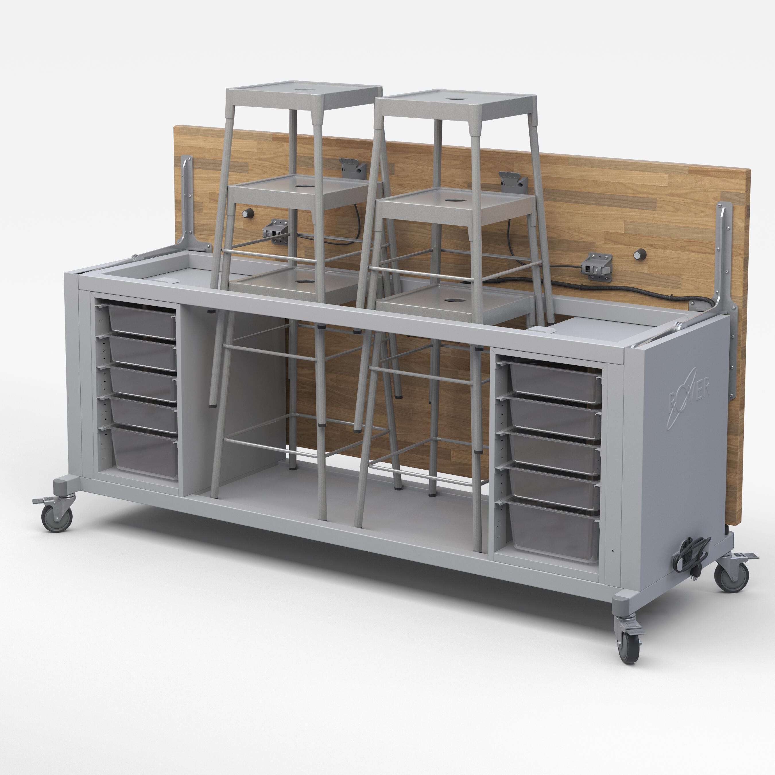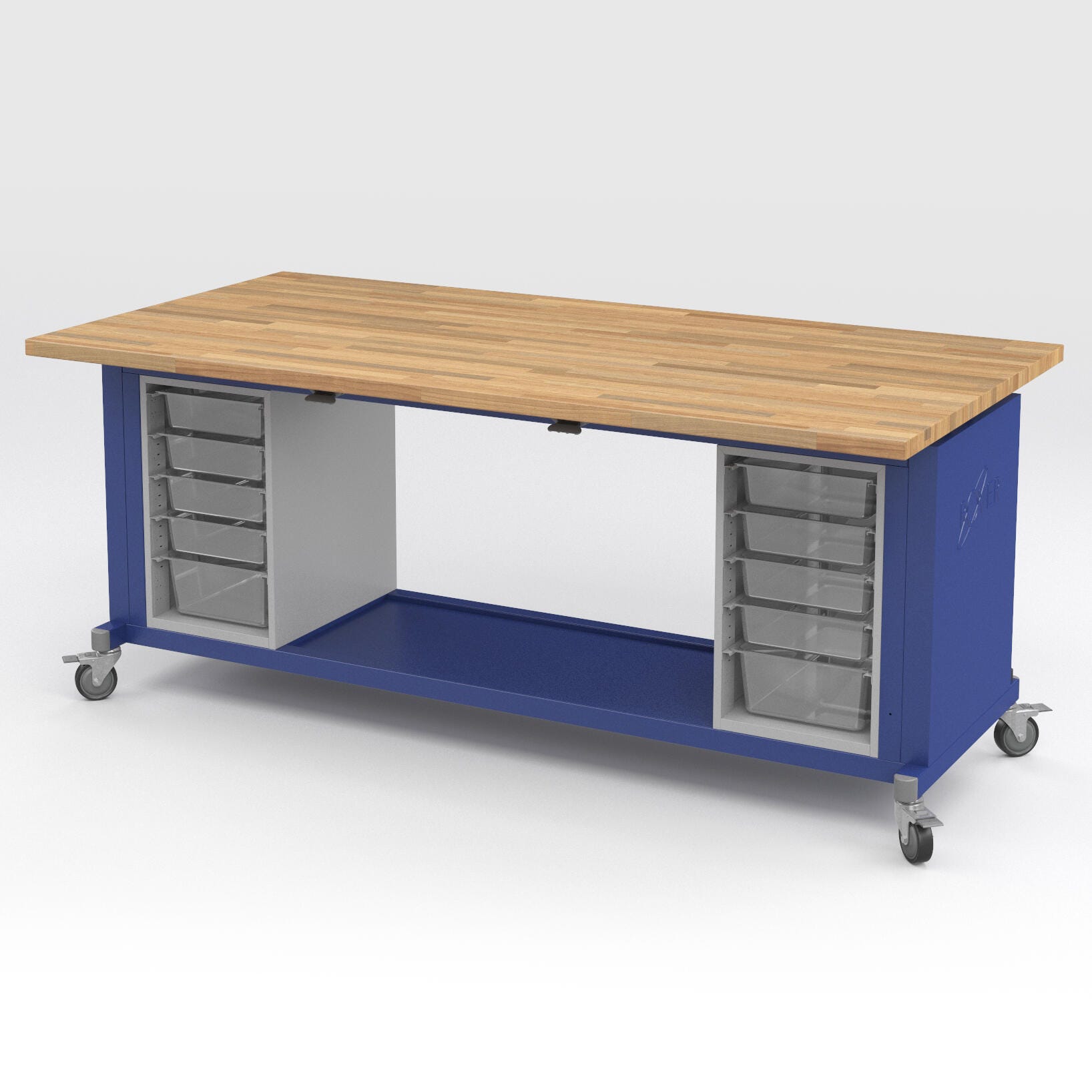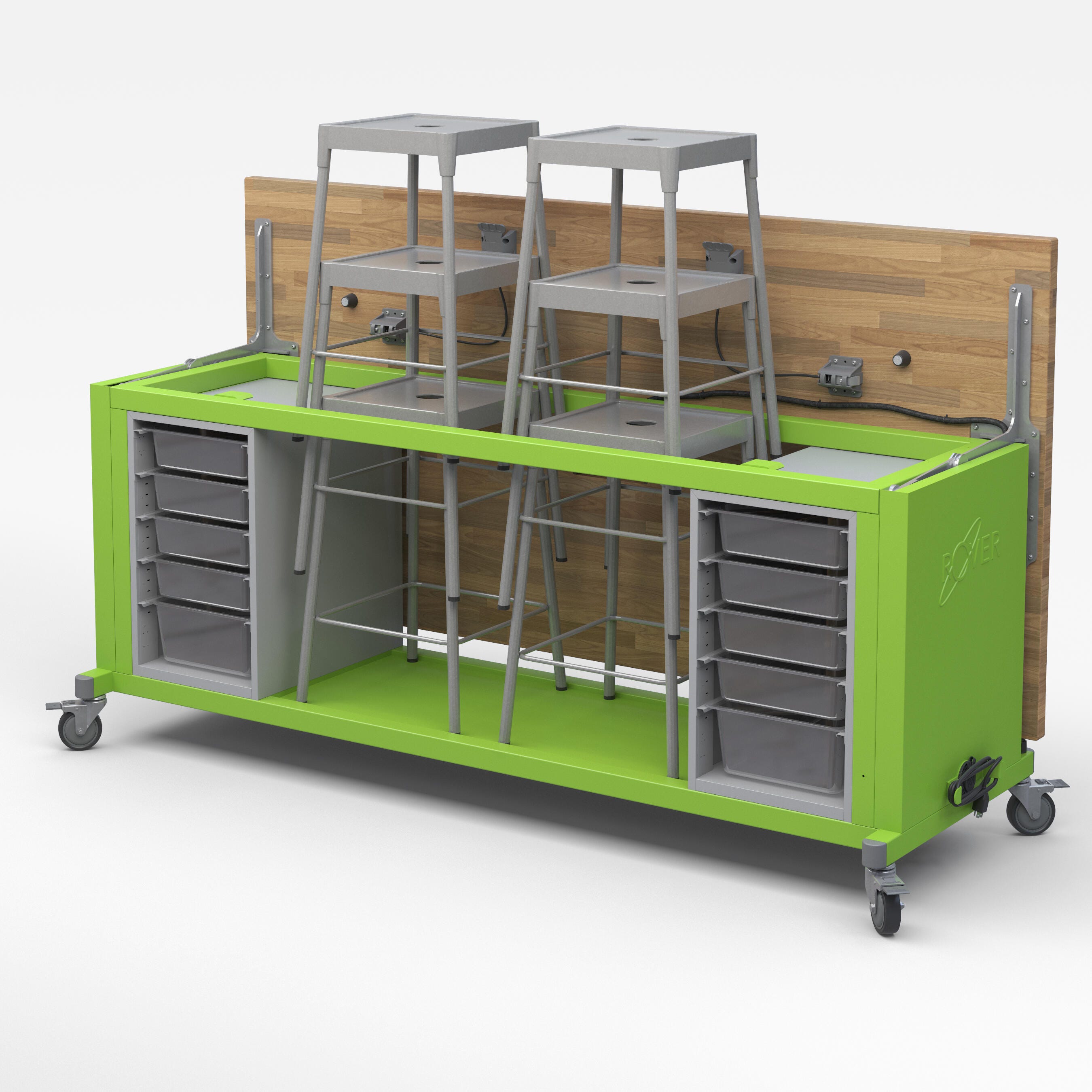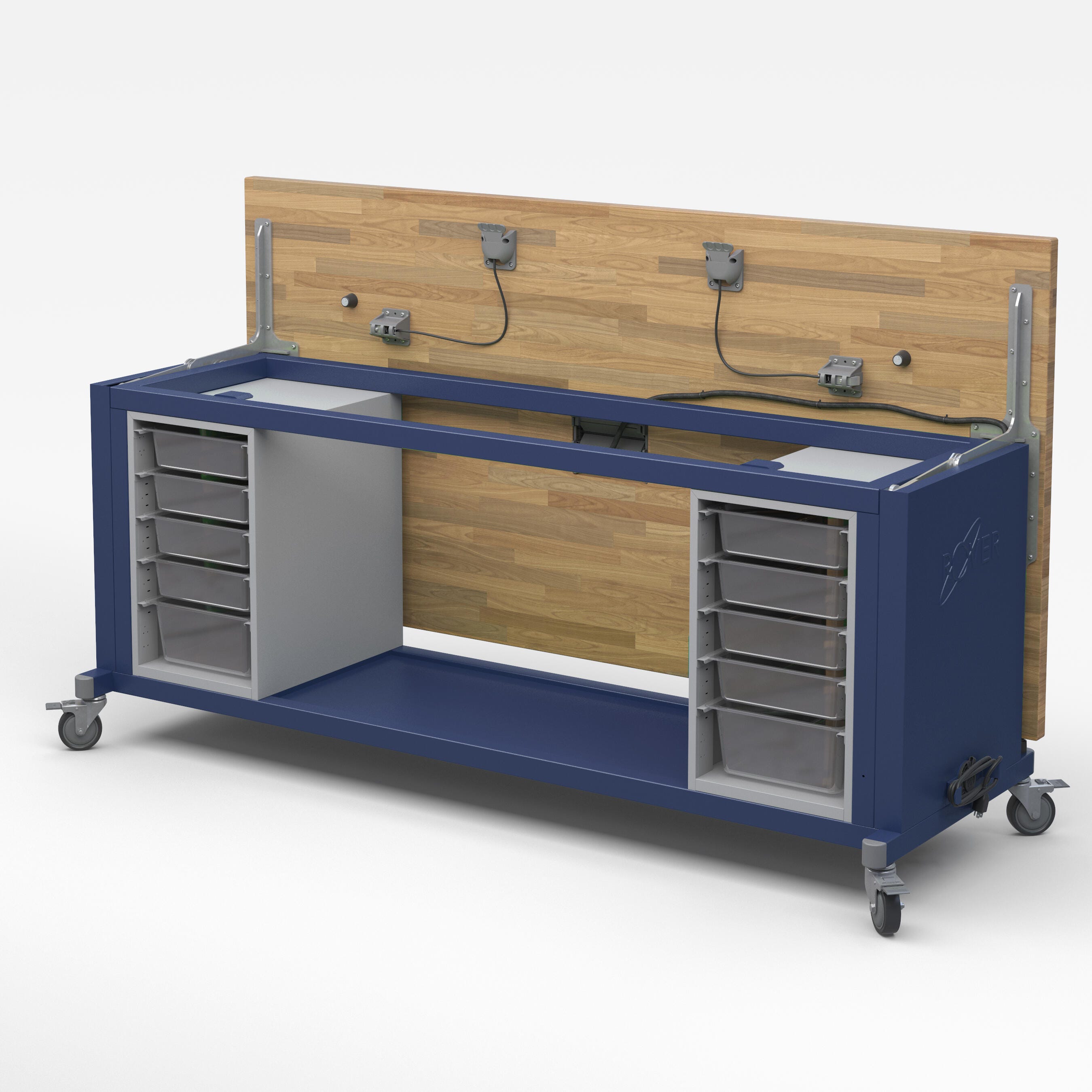 This workbench is designed to get the work done when flipped down, and made to move when flipped up. Durable, dependable, and perfect for dynamic spaces like art rooms and classrooms.