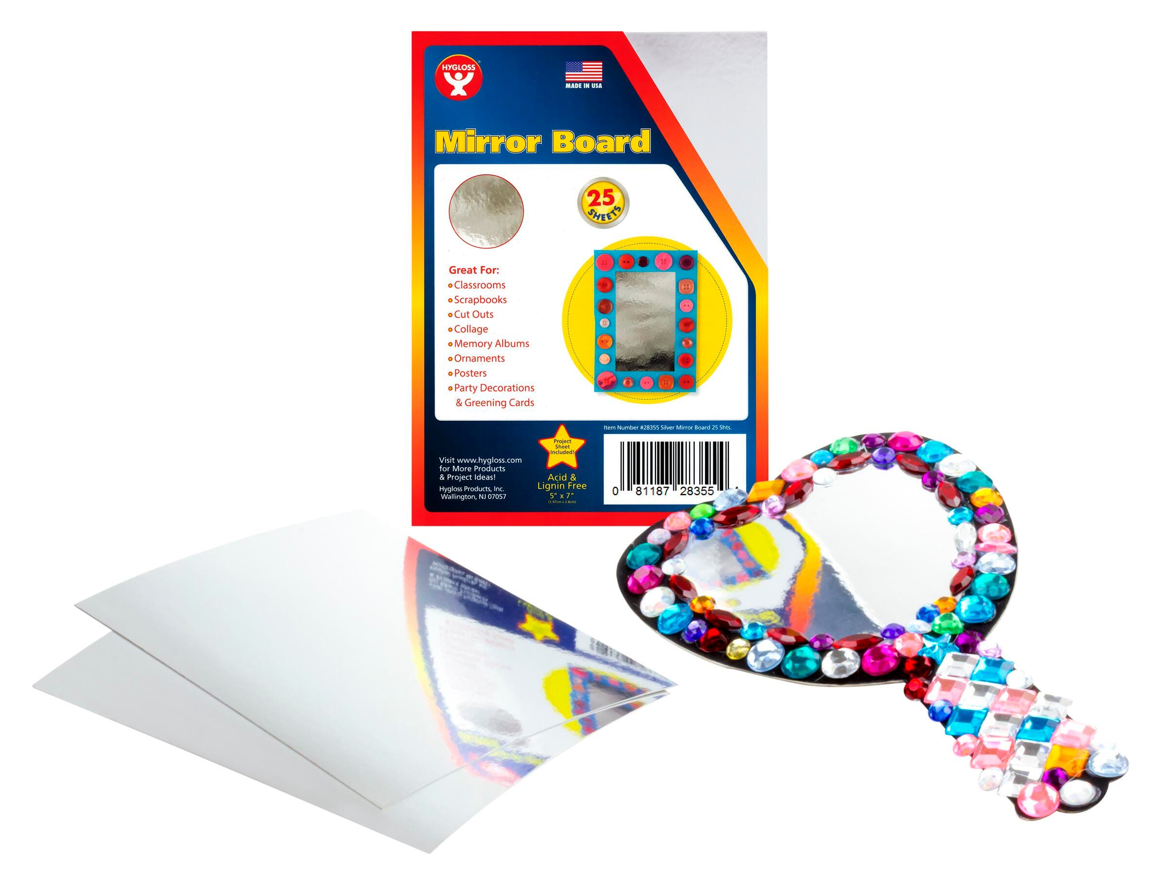 Description Hygloss Mirror Board has a faux mirror surface on one side, with white on the reverse side. It is made from highly reflective, super-shiny, superior quality 12 pt. card stock.
