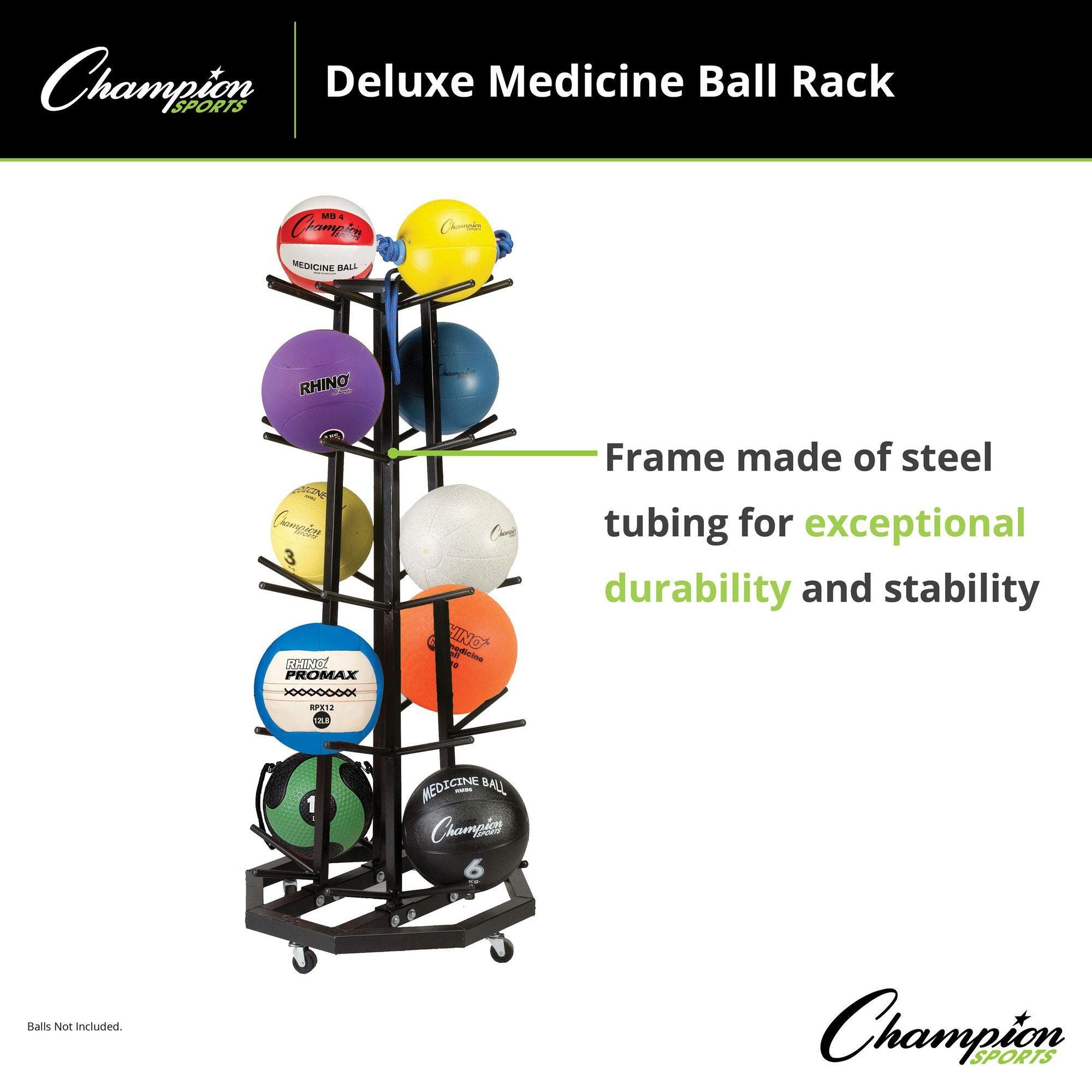 Champion Sports Deluxe Medicine Ball Rack, 25 x 25 x 56 Inches, Black