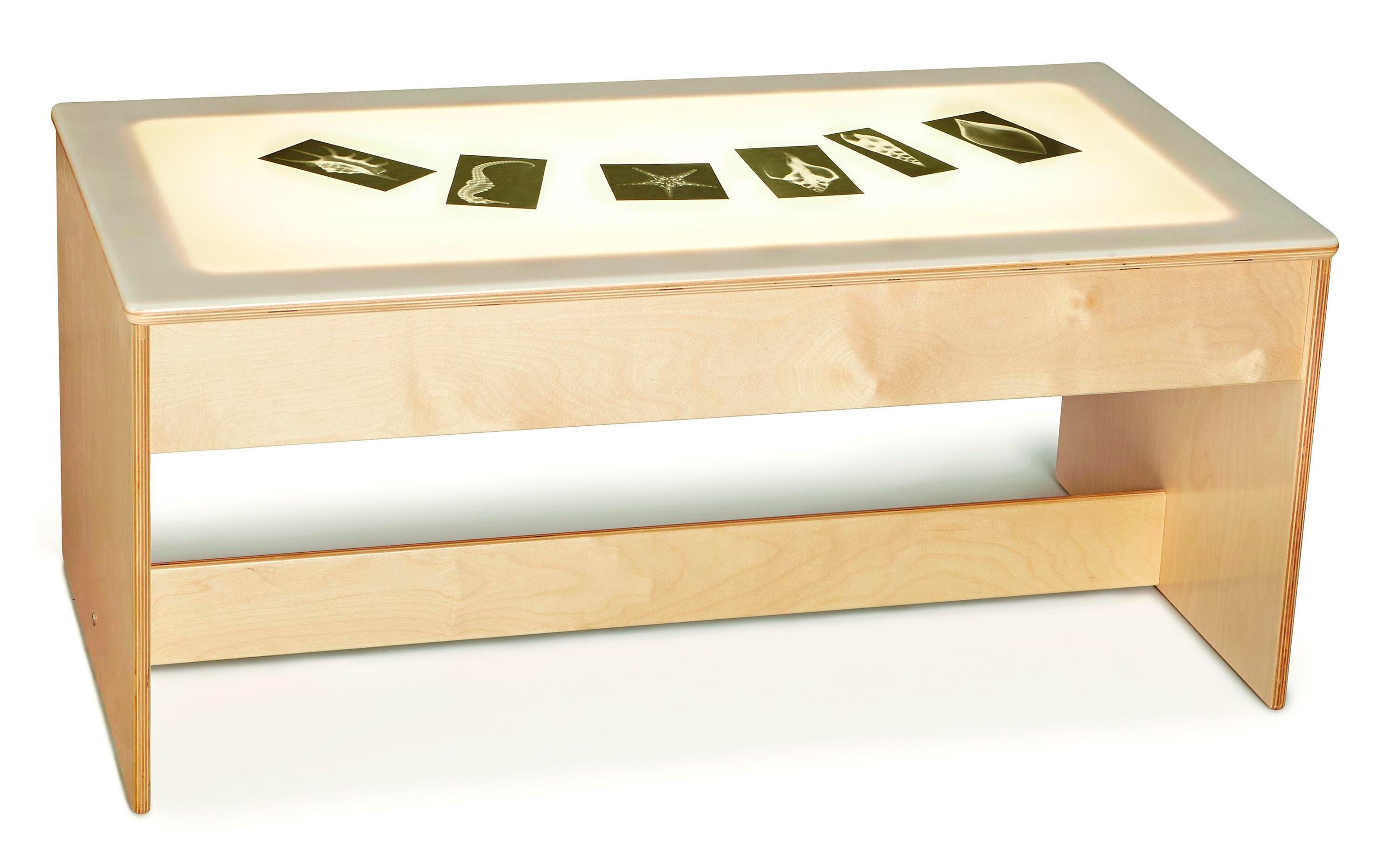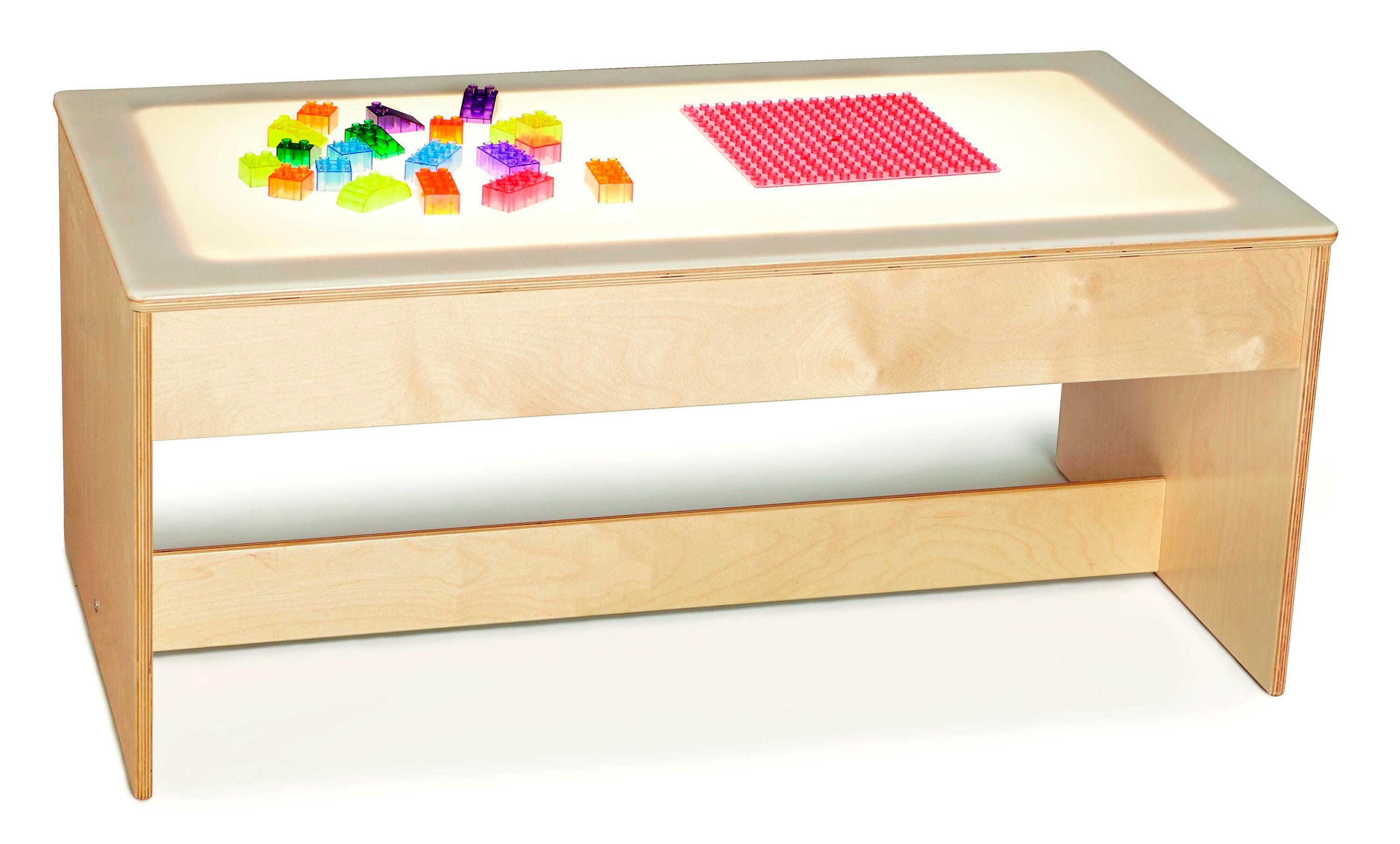 Let kids get creative and save valuable classroom space with this multi-function activity table. Use as a tracing table or with building bricks (not included). Light surface is made of heavy-duty acrylic and is flat, not recessed, making it easy to clean. Reflective panels help distribute light evenly. The LED lights are energy-friendly, built to last (rated for up to 50,000 hours), and are ETL listed for use in the US and Canada. Five-foot power cord plugs into a standard 110 volt outlet. Meets 16 CFR 1505. Measures 42-1/2 W x 22-1/2 D x 18-1/2 H inches.