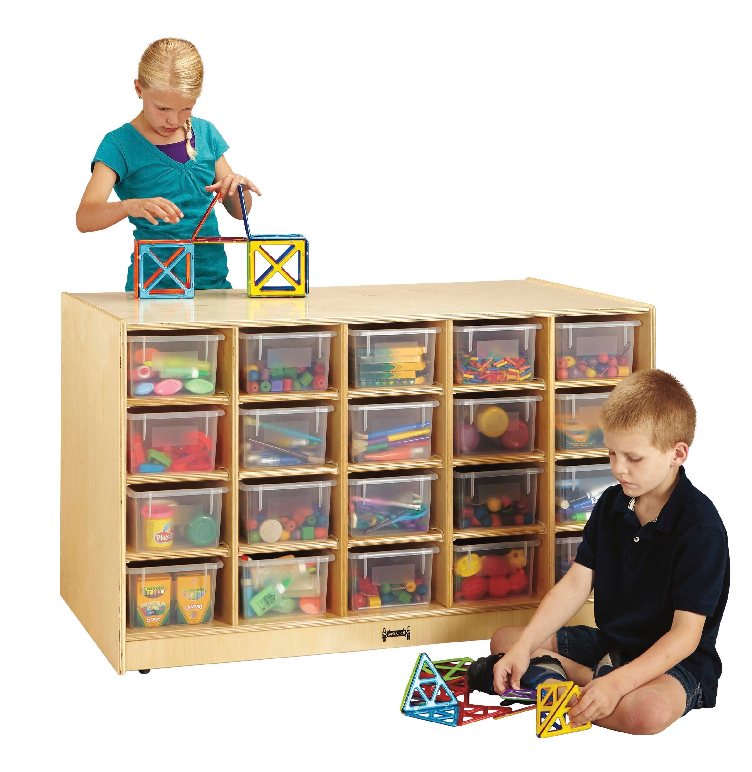 Jonti-Craft Double-Sided Island, Single + 20 Cubbie-Tray, 48 x 28-1/2 x 29-1/2 Inches, Clear Trays
