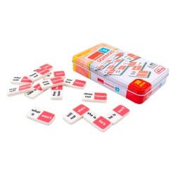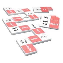 Contraction dominoes include a 28 piece set on thick plastic dominoes. Dominoes come in a collectors tin for storage. Children will love the feel of real dominoes as they complete the contractions matching game.Features
