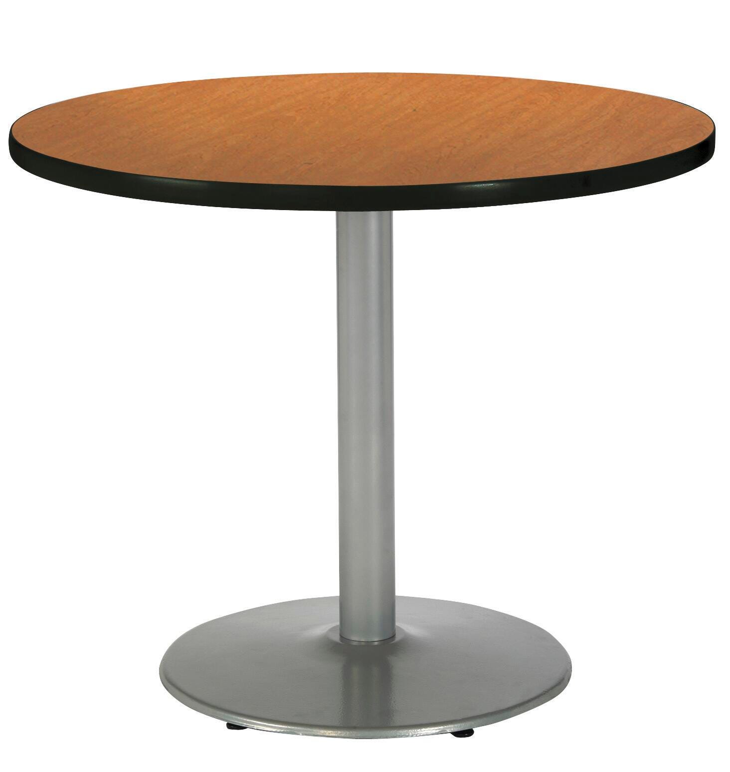KFI Seating Cafe Table has a round pedestal and comes with a round laminate top with a black vinyl edge and are 29 inches high.