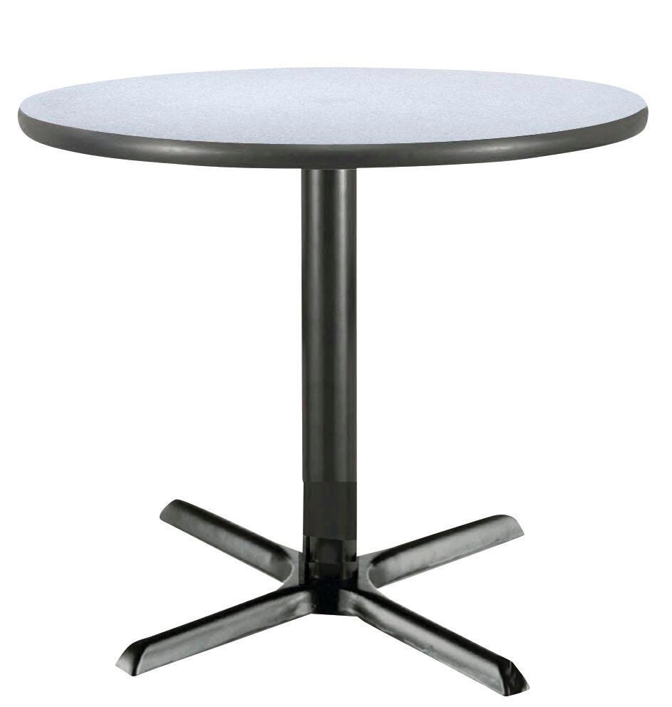 KFI Seating Round Cafeteria Pedestal Table features a black frame color and a 22 in X-style base. Table has high pressure laminate top.