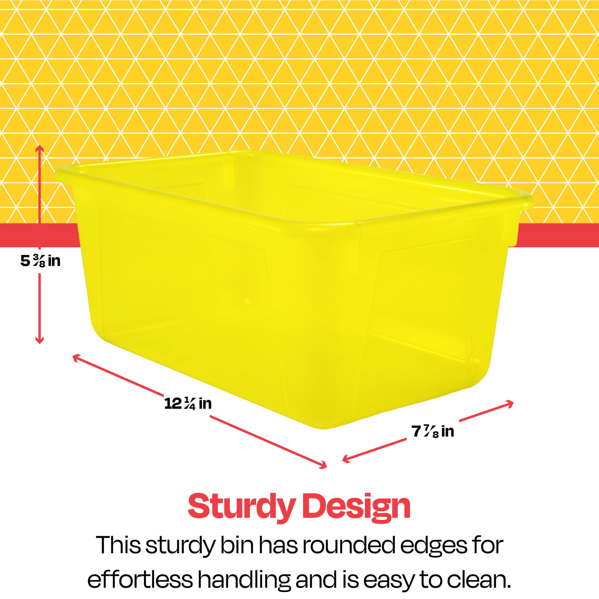 School Smart Translucent Storage Bin, 7-7/8 x 12-1/4 x 5-3/8 Inches, Yellow