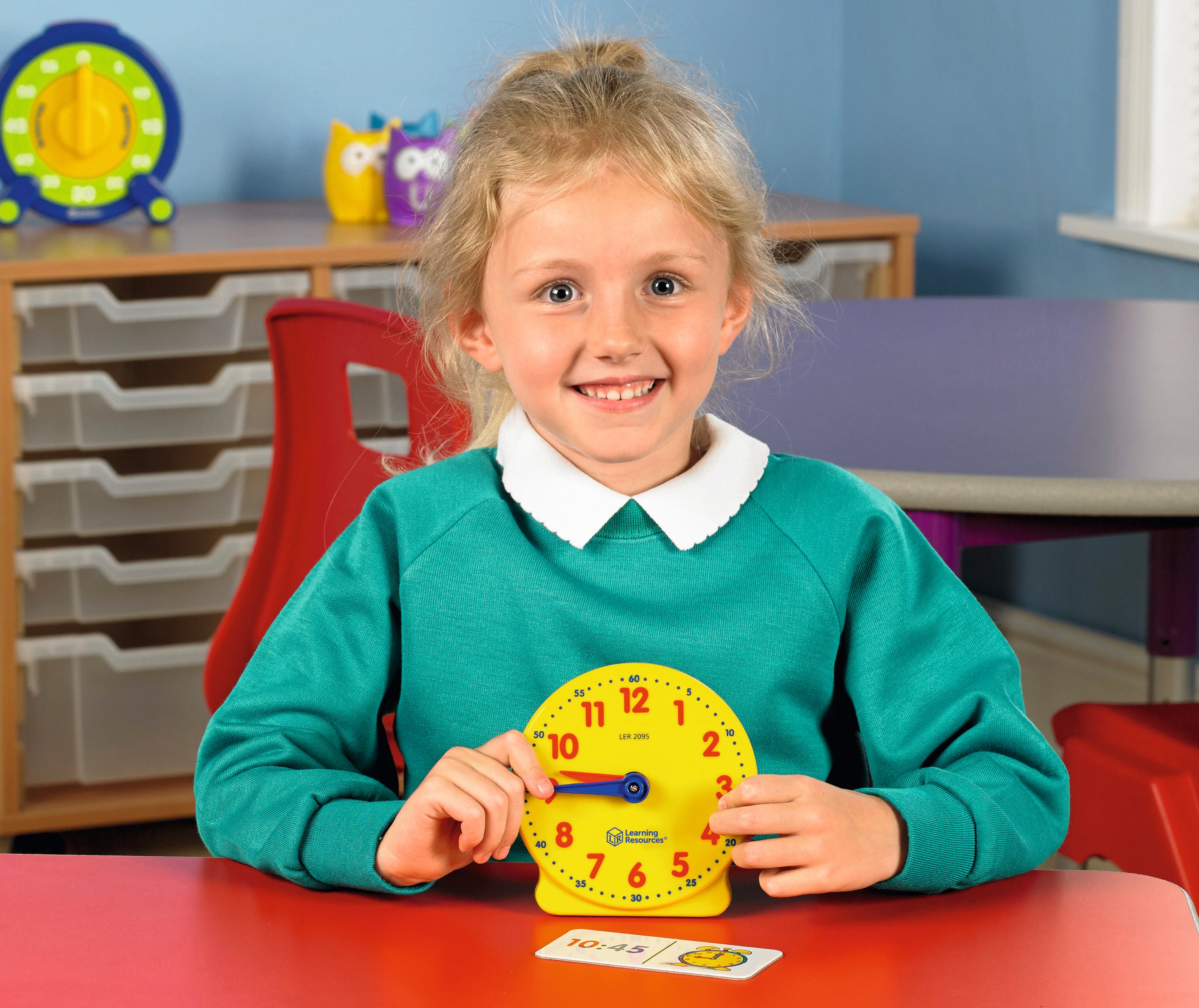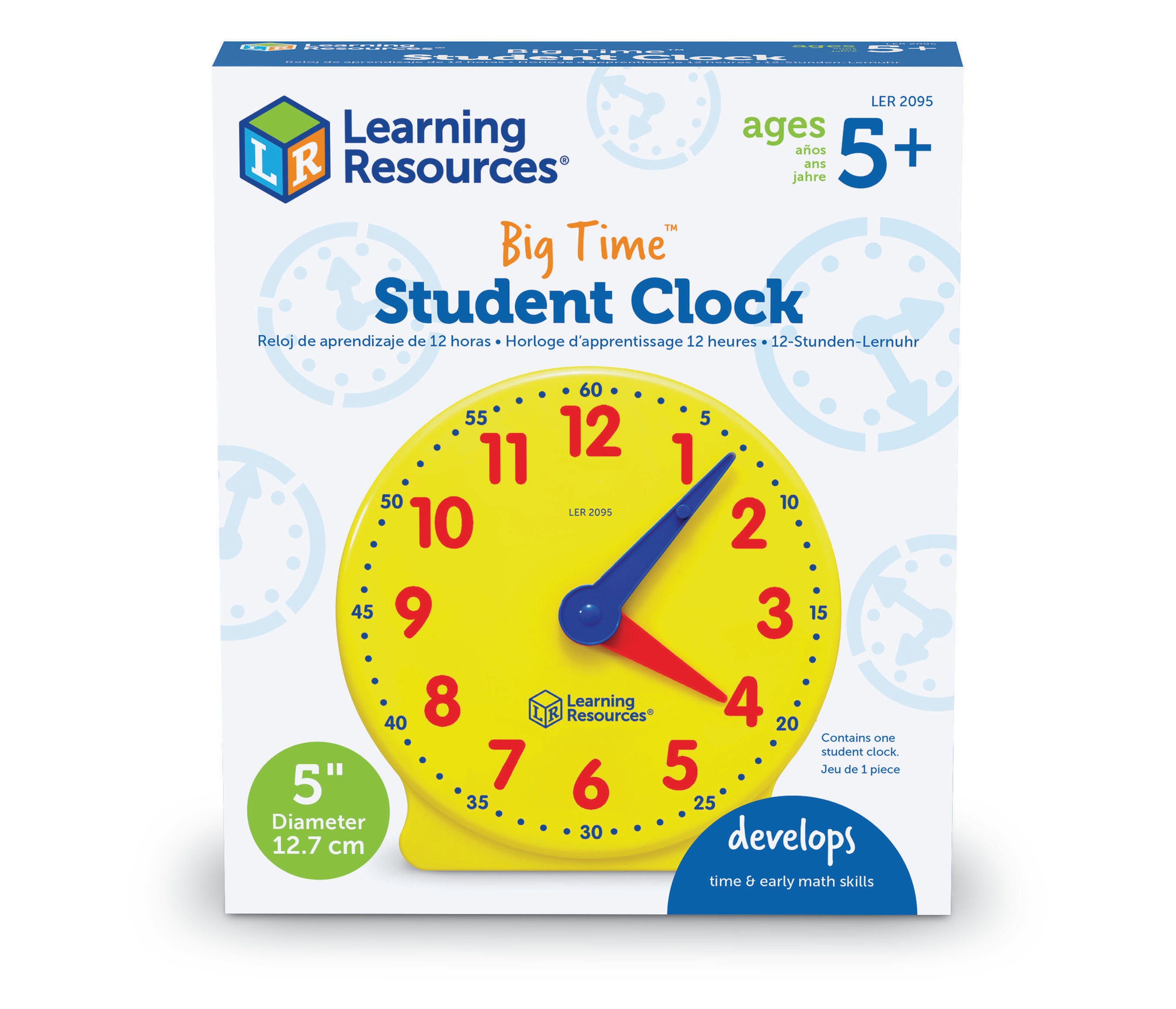 Learning Resources offers hidden gears maintain correct hour and minute relationships as you demonstrate time-telling concepts. Color-coding supports student understanding and durable, geared clock hands are designed to last! Clock measures 5 inches. Ages 5 and up.