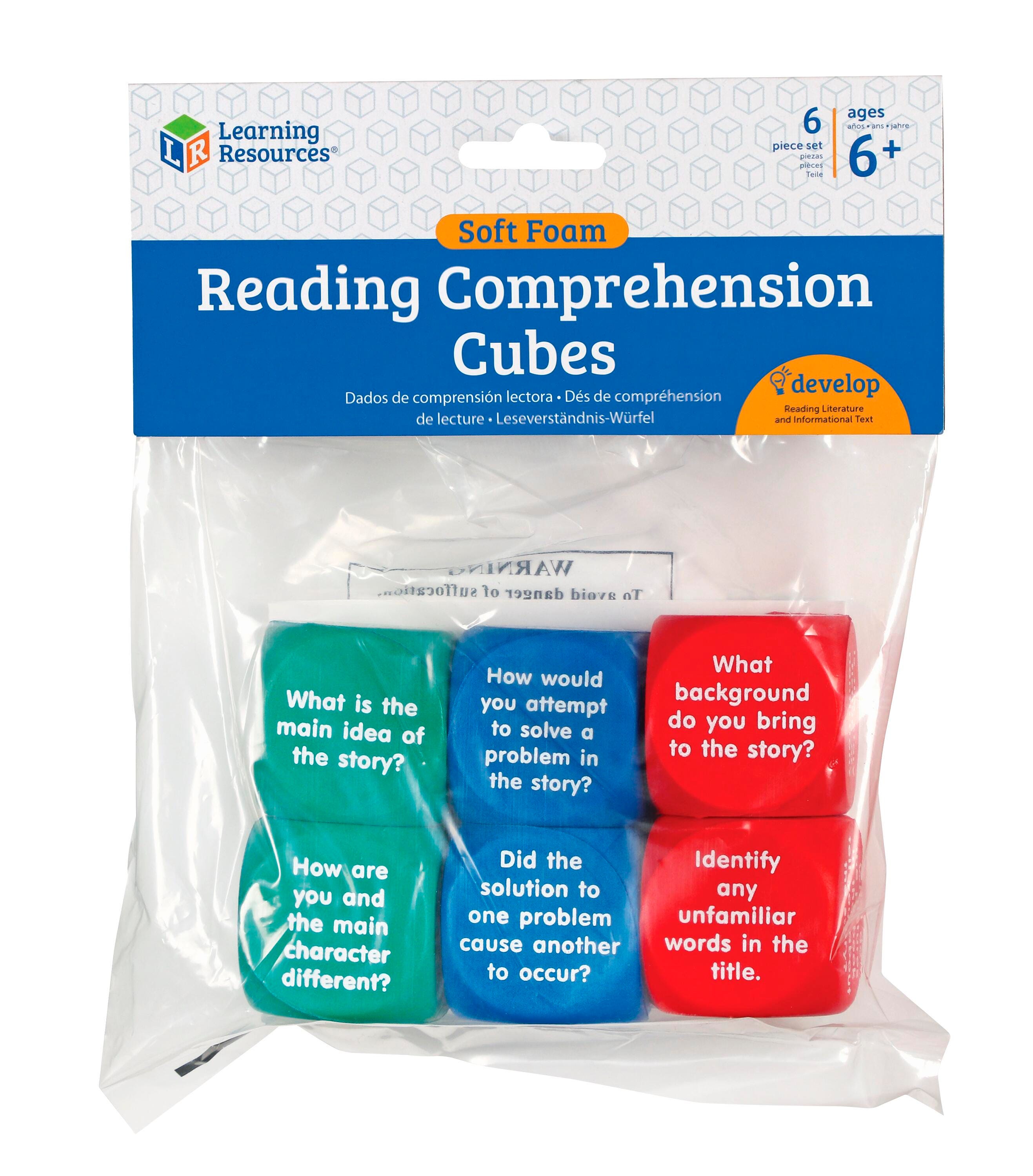 Learning Resources Reading Comprehension Cubes have questions on each side to liven up any reading discussion. Students answer specific questions before, during, and after reading. For individual or group use. Includes activity guide. Cubes measure 1-5/8 L x 1-5/8 W inches. Ages 6 and up.