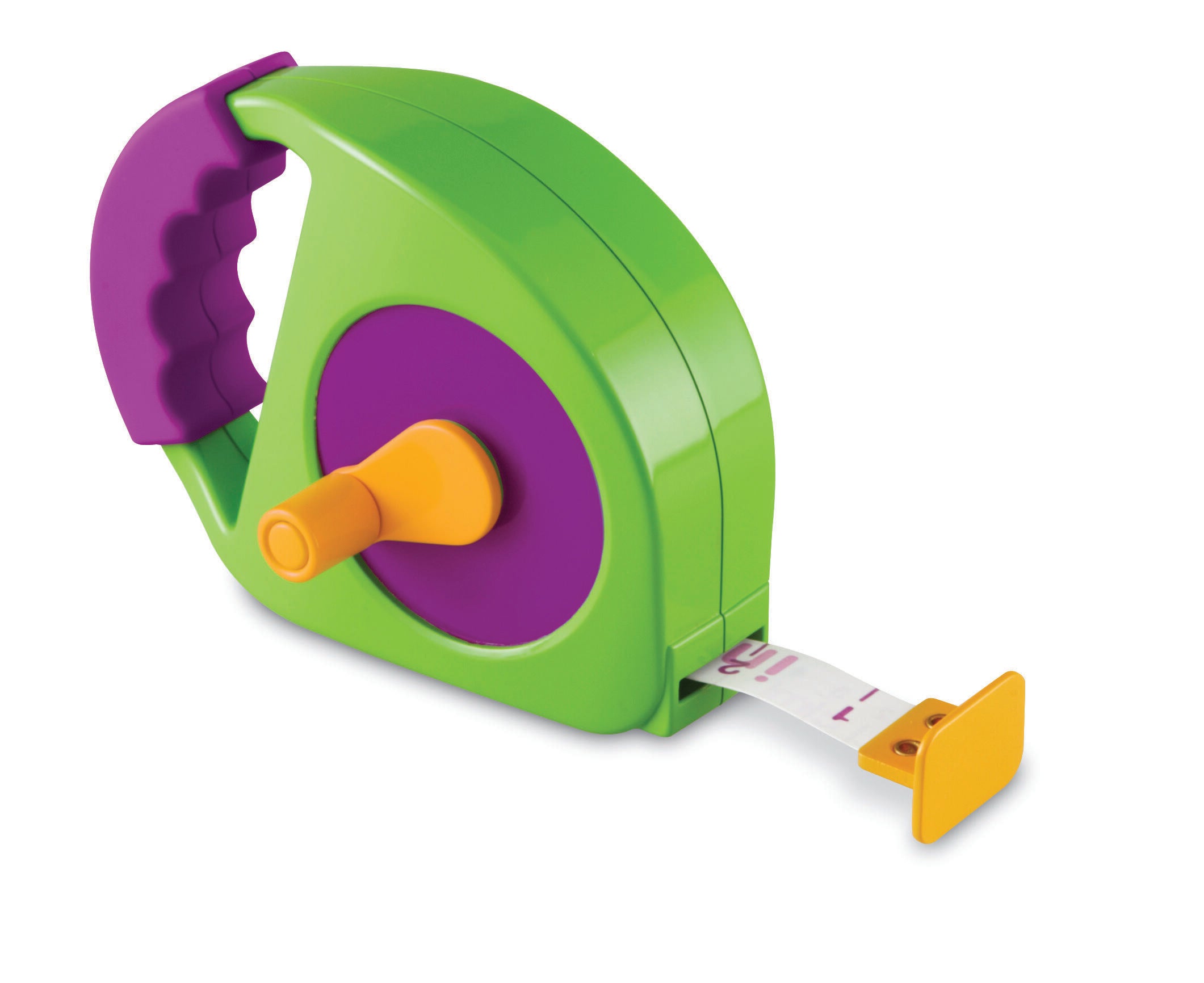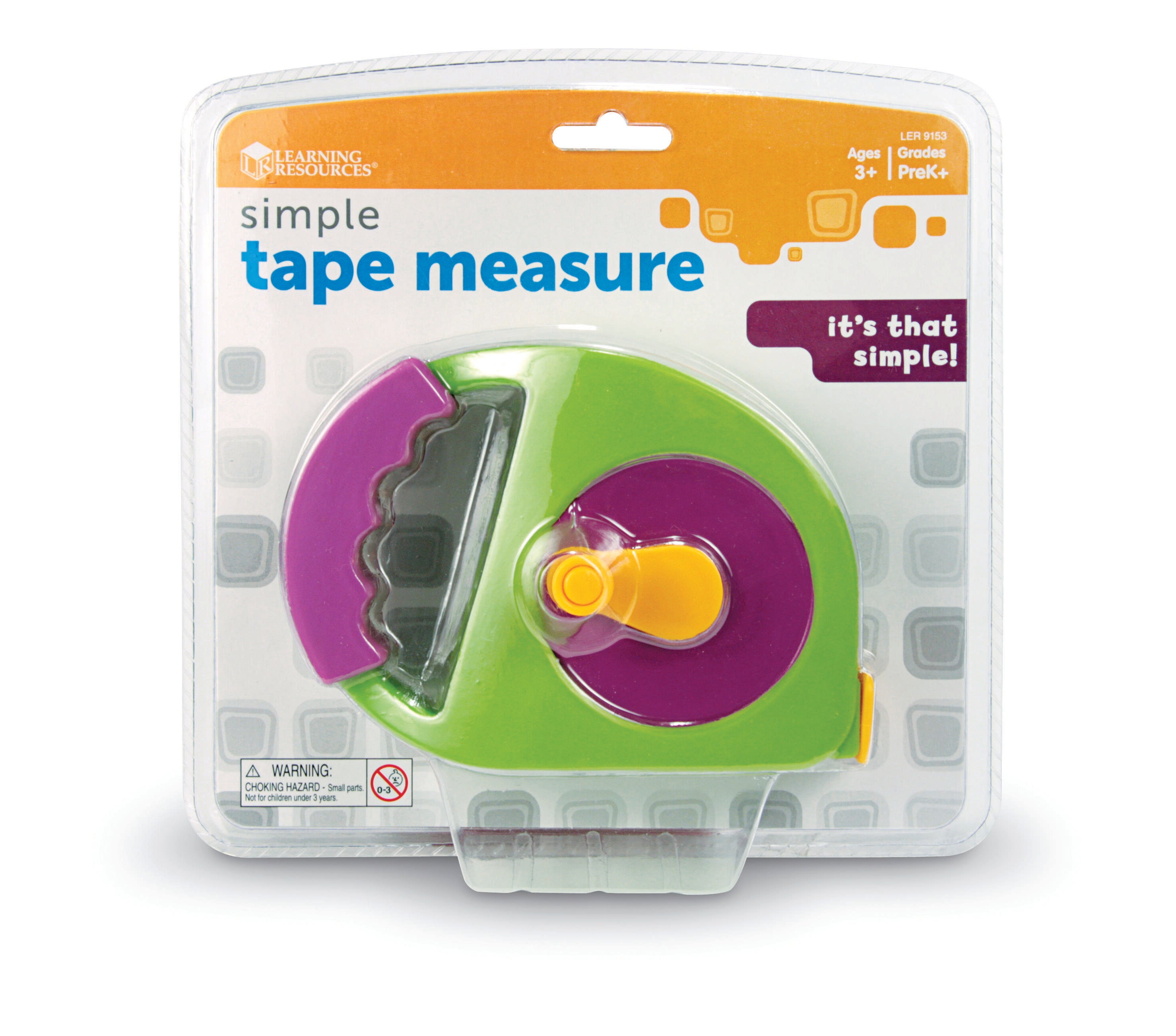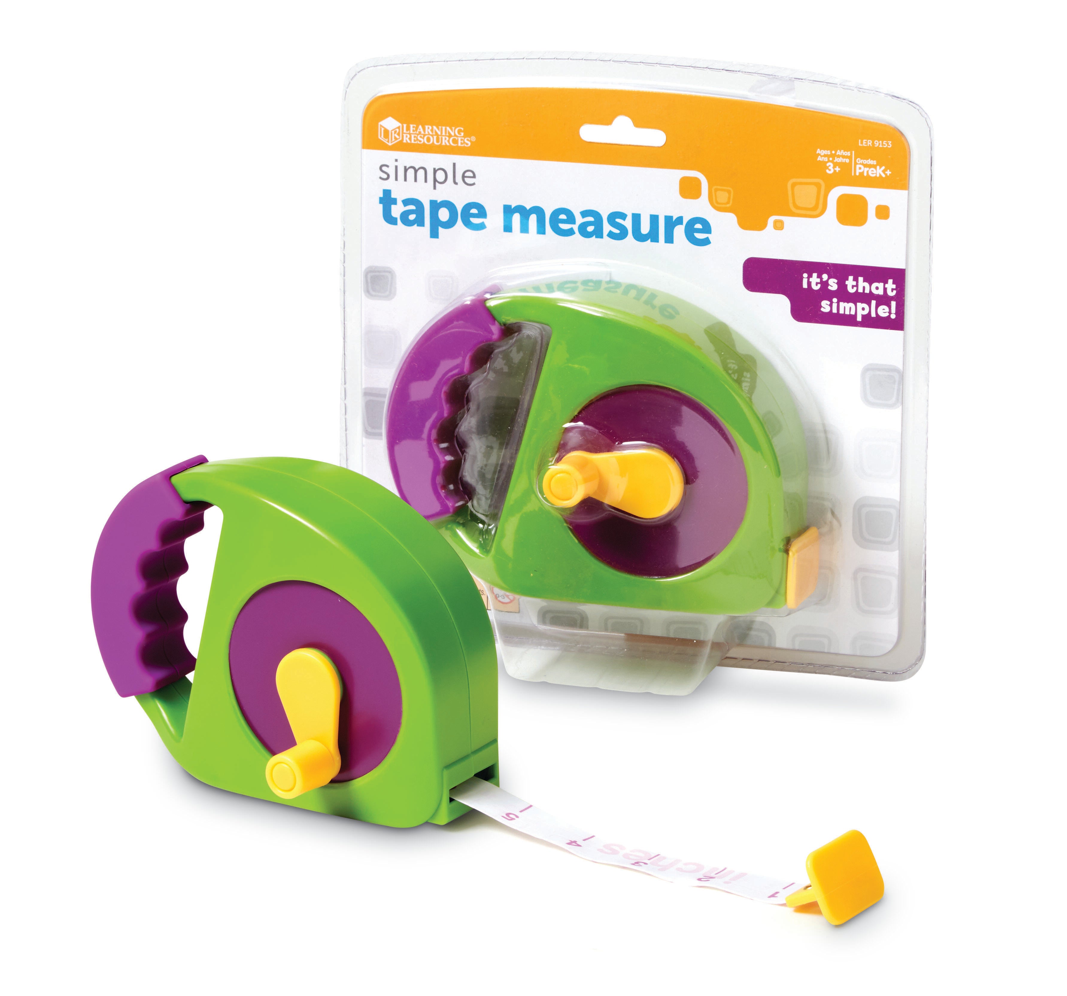 Measurement learning is fun with the Simple Tape Measure by Learning Resources! Perfectly sized, 4-foot long design has a manual wind-up that is easy to crank for small hands. Contemporary color blocked design features inches and feet on one side of the tape, and centimeters and meter on the other. Tape measure can be used for games like measuring various items around house and recording lengths, comparing/contrasting items, and more without worries of getting pinched or cut. White retractable measure tape and bold black numbers/measurement lines are easy to read. For ages 3 and up.Features